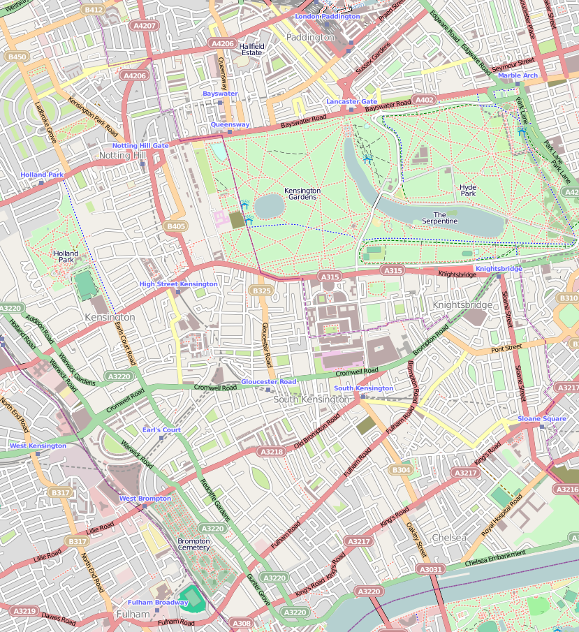 지하철 역 | 하이 스트리트 켄싱턴 역 얼스 코트 역 글로스터 로드 역 켄싱턴 올림피아 역 |