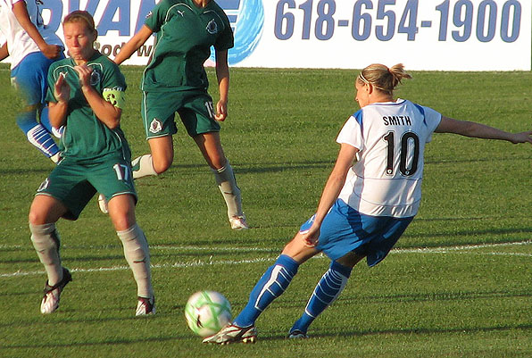 2010 WPS 시즌에는 21경기에 모두 출전하여 11골 5도움을 기록했고, WPS 올스타전에도 출전했다. 2011 WPS 시즌에는 부상으로 인해 10경기에 출전하여 1골 4도움을 기록하는 데 그쳤다. 2011 시즌을 끝으로 미국 여자 프로 축구가 폐지되면서 스미스는 한동안 무소속으로 남았다.[52]