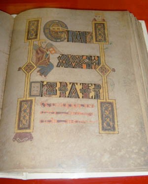 요한복음의 첫 페이지는 화려하게 장식되어 있는데, 조지 베인은 이를 "In principio erat verbum verumla" (태초에 참된 말씀이 있었다)으로 해독했다.[53] 이는 단순한 라틴어 번역이 아니라, 그리스어 원본을 바탕으로 한 자유로운 번역으로 보인다.