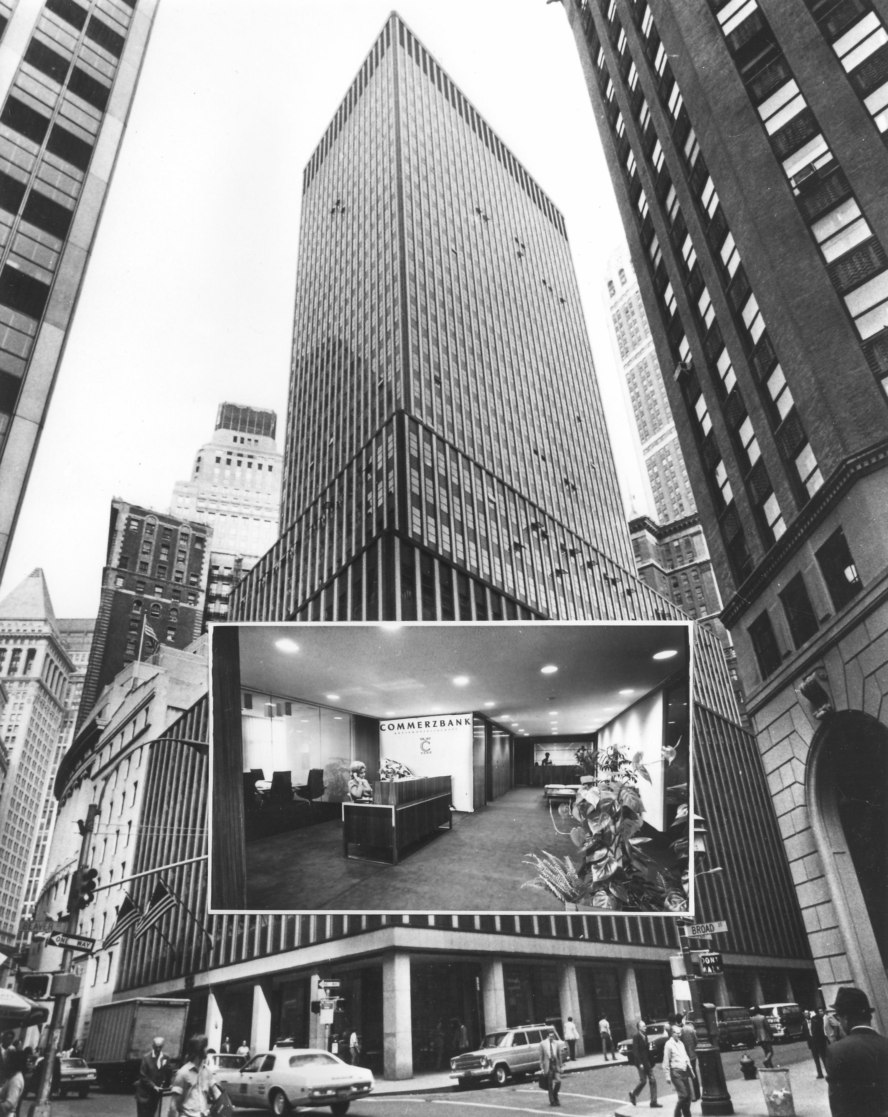 1967년, 유로본드 시장 성장에 발맞춰 ICBL(International Commercial Bank in London) 설립에 참여했다. 공동 출자자는 멜론 계열의 어빙 트러스트(Irving Trust) 등이었다.[219] 1969년에는 룩셈부르크에 최대 해외 거점인 코메르츠방크 인터내셔널(Commerzbank International)을 설립했다.[218] 1967년 설립된 뉴욕 대리점은 1971년에 지점으로 승격되었다.[220] 닉슨 쇼크 이후, 1970년대에 코메르츠방크는 전 세계에 지점을 열었고,[221][218] 회사의 중추를 프랑크푸르트로 이전했다.[219]