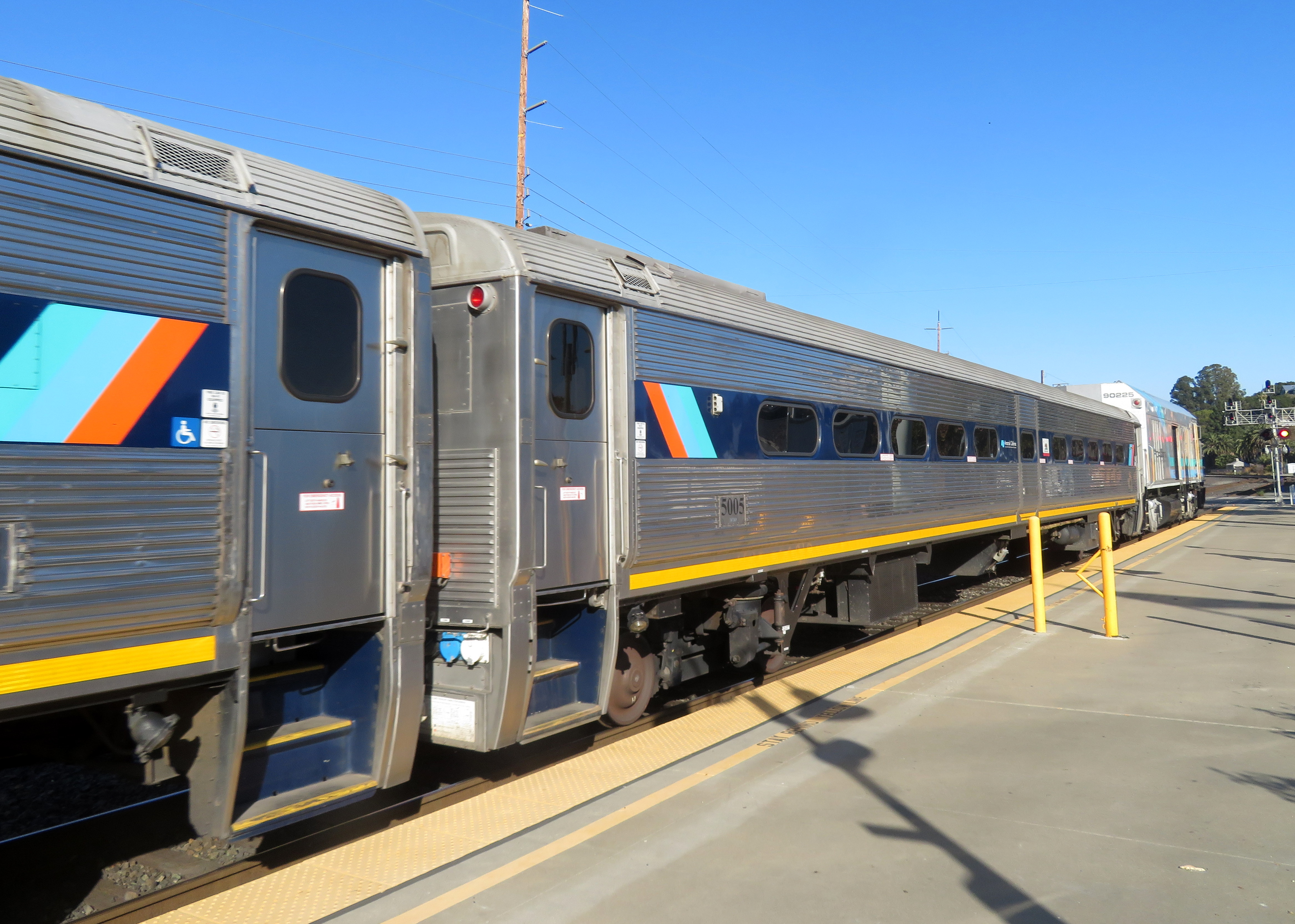 2019년 마르티네즈 역에서 암트랙 샌 호아킨 열차에 연결된 코멧 IB 객차.