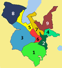 코모는 다음과 같은 프라치오니it(대략적으로 영미권의 구에 해당)로 나뉜다.[1]
