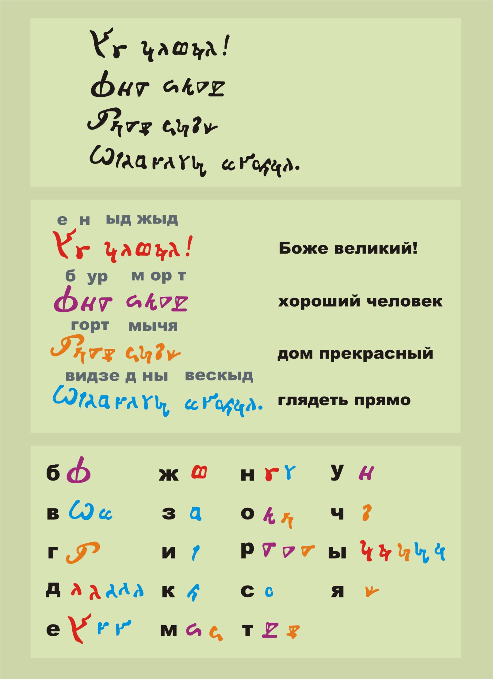 14세기에 페름의 성 스테판이 고대 페름 문자(안부르)를 만들었으나,[11] 현재는 키릴 문자를 기반으로 한 문자를 사용한다. 이 문자에는 러시아어에 없는 모음 소리를 나타내기 위해 Іі와 Ӧӧ 두 개의 문자가 추가되었다. 19세기부터 키릴 문자가 사용되었으며, 1932년부터 1936년까지 잠시 라틴 문자로 대체되기도 했다. 코미어로 인쇄된 최초의 책은 1815년에 출판된 예방 접종 매뉴얼이다.