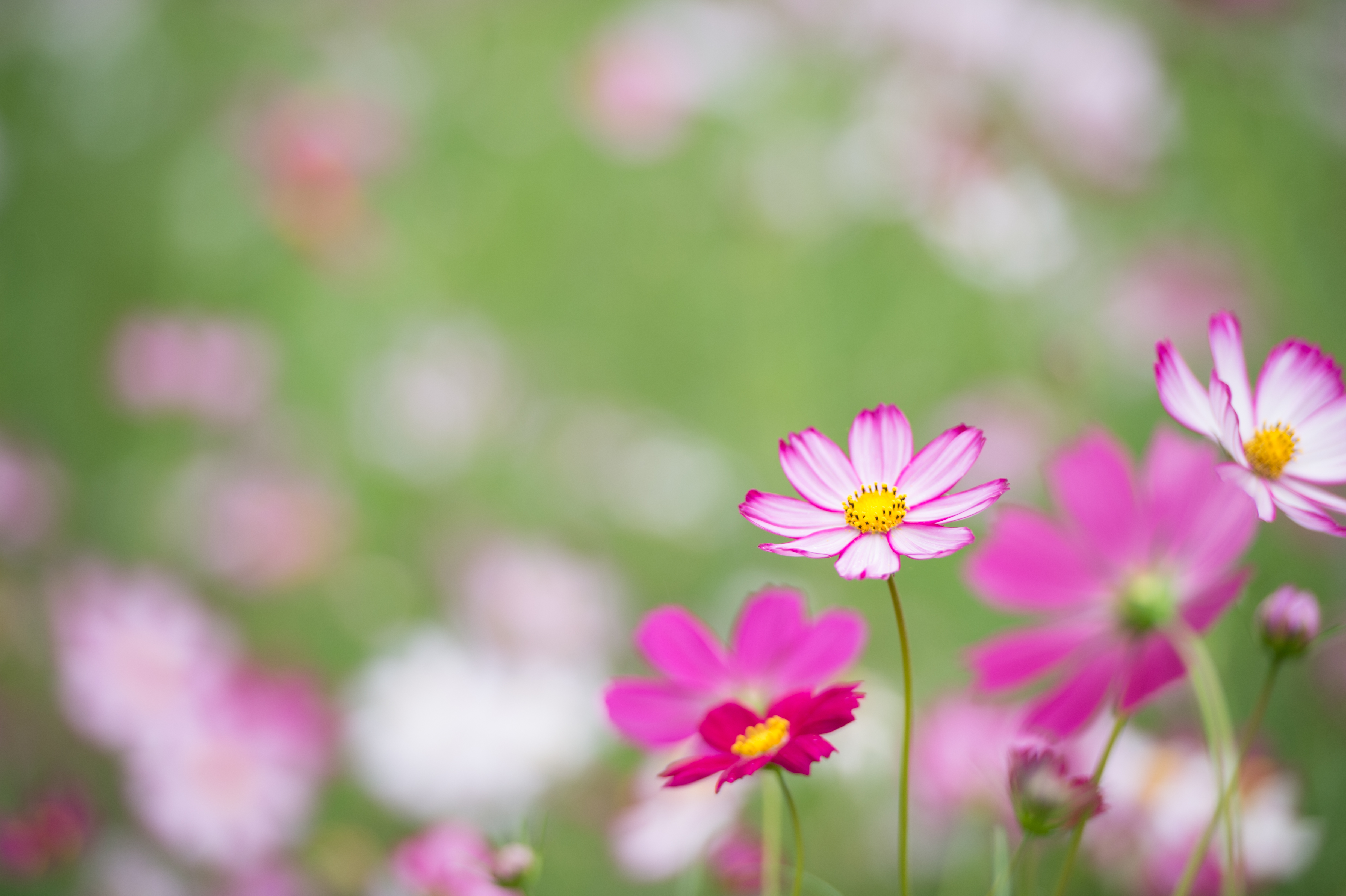 살구 코스모스(Cosmos bipinnatus)는 일반적인 코스모스를 가리킨다. 높이는 1 - 2m이며, 줄기는 굵고 잎은 잘게 갈라진다. 황화 코스모스(Cosmos sulphureus)는 다이쇼 시대에 도래했으며, 살구 코스모스보다 더위에 강하다. 꽃은 노란색, 주황색을 띤다. 초콜릿 코스모스(Cosmos atrosanguineus)는 다이쇼 시대에 도래했으며, 검은 보라색 꽃을 피우고 초콜릿 향이 난다. 여러해살이 풀이며, 내한성이 있다.