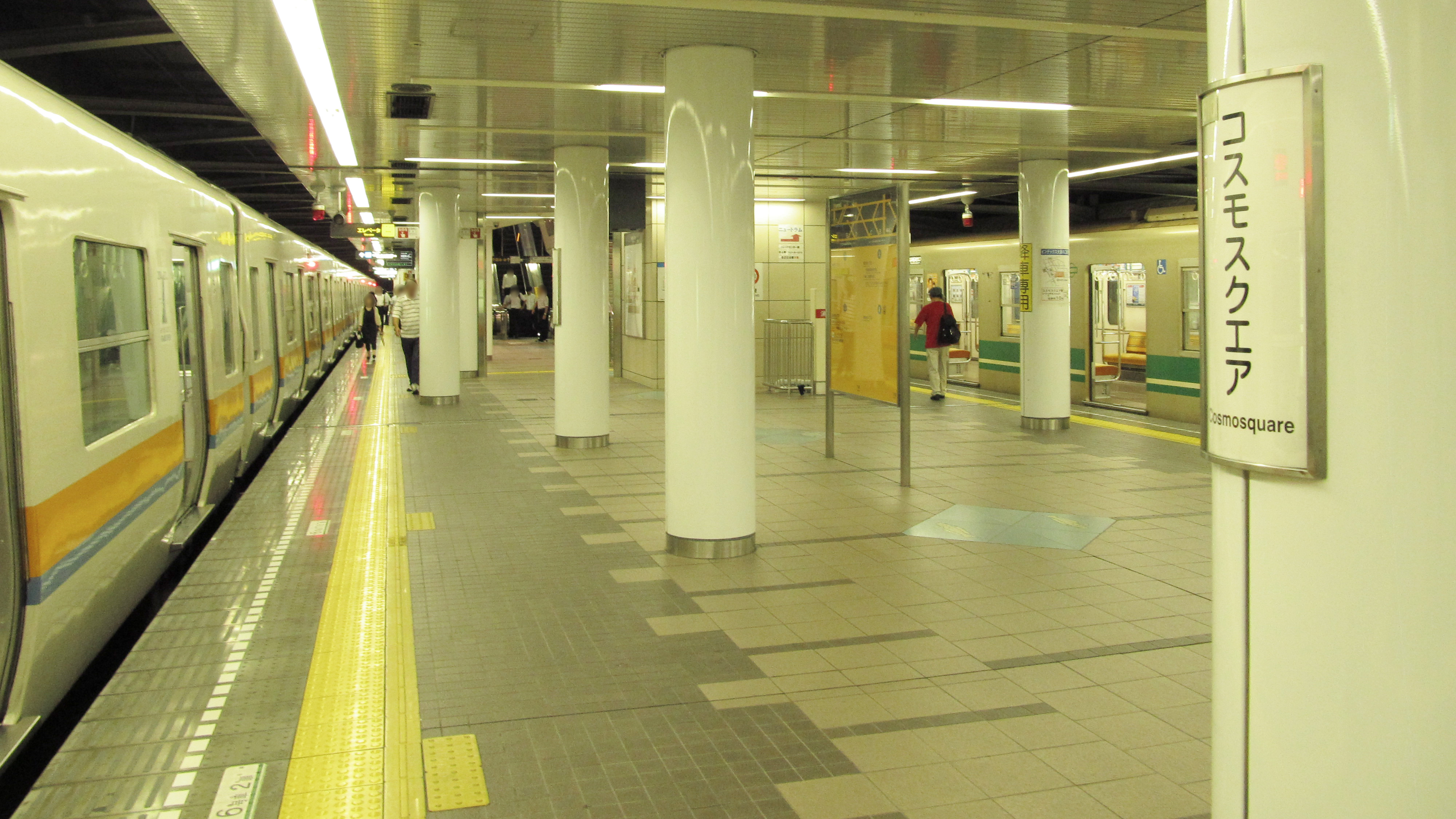 코스모스퀘어역에서는 다음 두 노선을 이용할 수 있다.