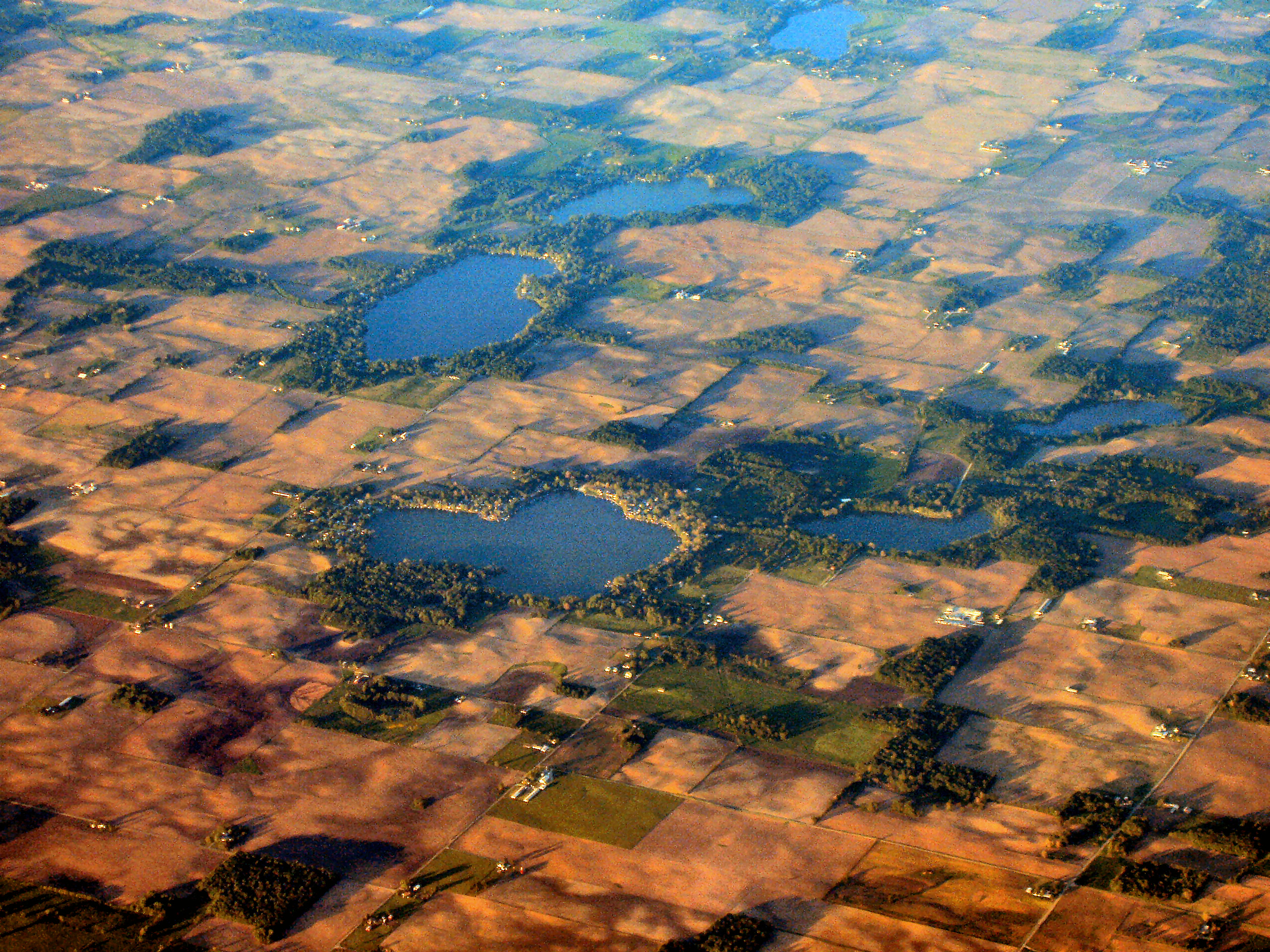 남부 코스키우스코 군은 실버레이크 근처의 비버 댐 호수(전경)와 유사한 작은 호수가 점재해 있다.