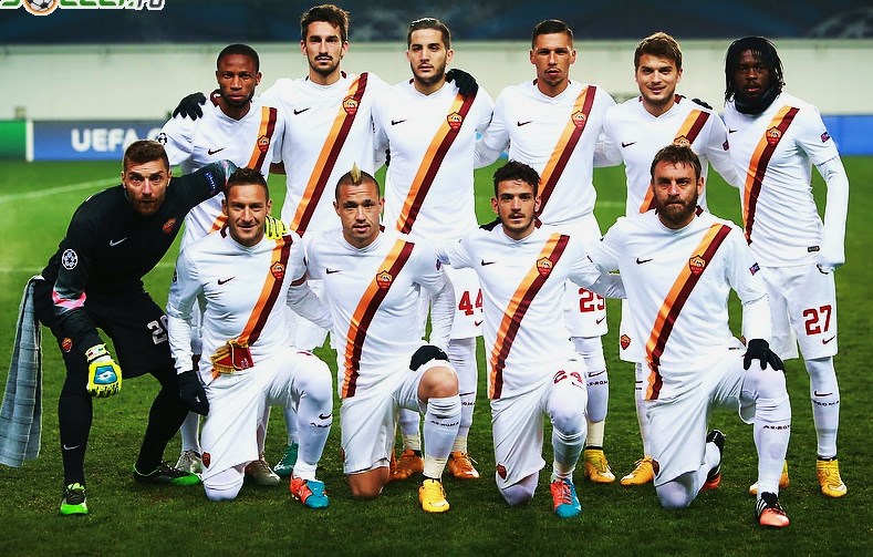 2014년 11월 25일 CSKA 모스크바와의 경기를 앞두고 로마에서 출전하는 마놀라스 (상단, 왼쪽 중간).