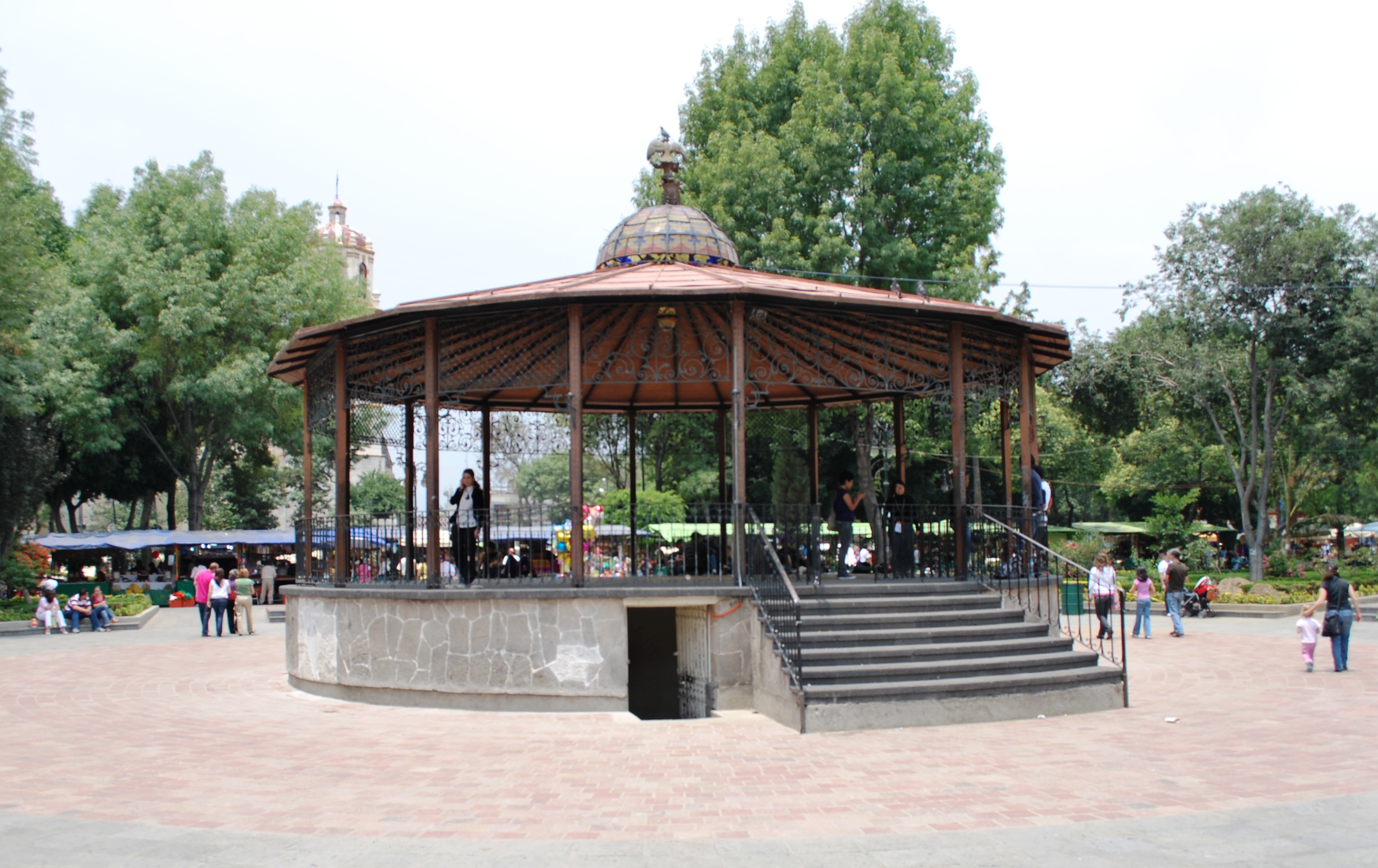 Plaza Hidalgo는 동쪽으로 Calle Carillo Puerto, 서쪽으로 Calle Caballocalco, 북쪽으로 Calle B. Dominguez와 Casa Municipal, 남쪽으로 Plaza del Centenario와 산후안 바티스타 교구가 접해 있다.[19] 광장 중앙에는 20세기 초 키오스크가 있으며, 스테인드글라스 돔 위에 청동 독수리가 얹혀 있다.[19][20] 미겔 이달고 이 코스티야의 이름을 따서 명명되었으며, 루이스 아리아스가 제작한 사제 조각상도 있다.[20]