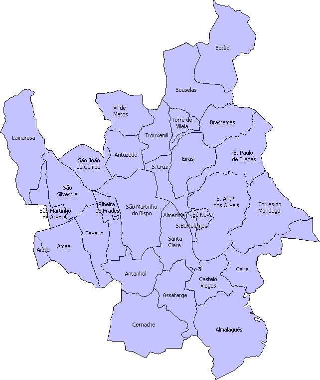 1854년, 수도회 추방과 지방 자치 개혁으로 코임브라 시의 재편이 필요해지면서 행정 구역의 기존 구조에 변화가 생겼다. 1911년 1월 1일, 구시가지와 셀라스(Celas), 올리바이스(Olivais) 등을 연결하는 전차가 개통되면서 코임브라 시의 성장이 본격화되었다.