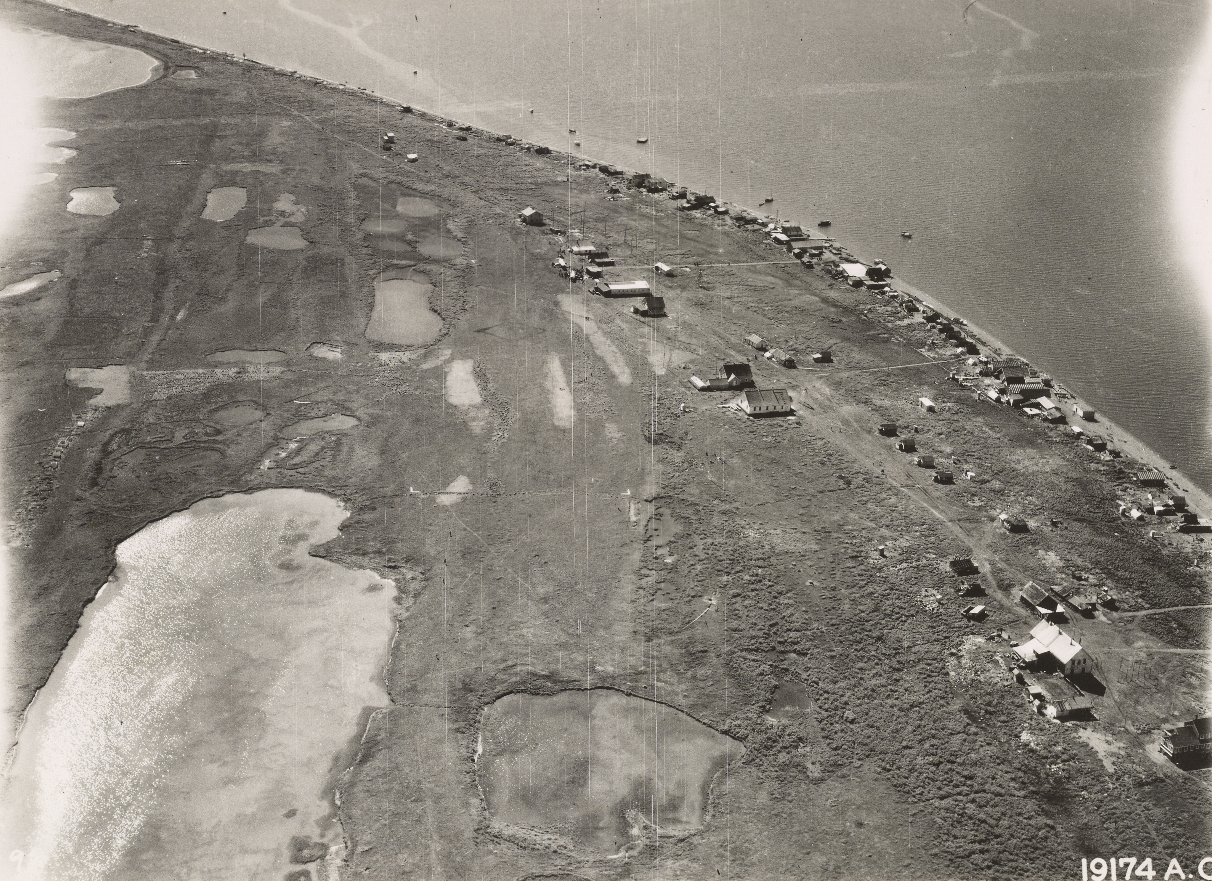 > 우리가 어렸을 때 앞 거리 뒤에는 물이 있었고 Ipalooks와 Adams' 사이에는 웅덩이가 있었어요. Coppocks와 Lena Norton의 집 사이에도 또 다른 웅덩이가 있었죠...프론트 스트리트의 섬은 코체부를 Qikiqtaġruk이라고 부르게 했어요. 왜냐하면 이누피아크어로 섬은 ''qikiqtaq''라고 불리거든요.