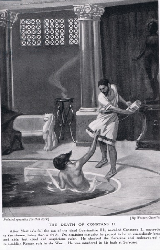 《Hutchinson's History of the Nations》 (1920년경)에서 발췌한 콘스탄스 2세의 죽음
