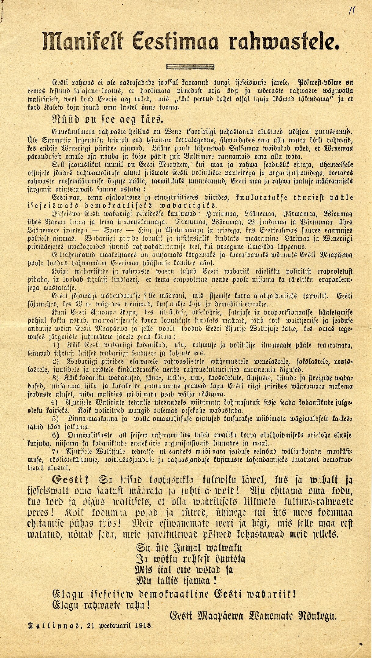 마아파에브 원로회는 의회가 에스토니아에서 유일하게 법적으로 선출되고 구성된 권위라고 선언했다. 1918년 2월 19일에는 3인으로 구성된 에스토니아 구국 위원회가 결성되었고, 콘스탄틴 패츠는 그 구성원 중 한 명이 되었다.[7]