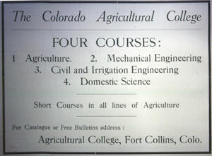 콜로라도 주립 대학교(CSU)는 1870년 콜로라도 농업 대학으로 설립되었다. 초기에는 자금 부족으로 어려움을 겪었으나, 지역 사회의 기부와 노력으로 1879년 첫 학기를 시작했다.[9] 처음에는 대학 예비 학교 역할이 컸으며, 농업 중심의 교육이 이루어졌다.[11]