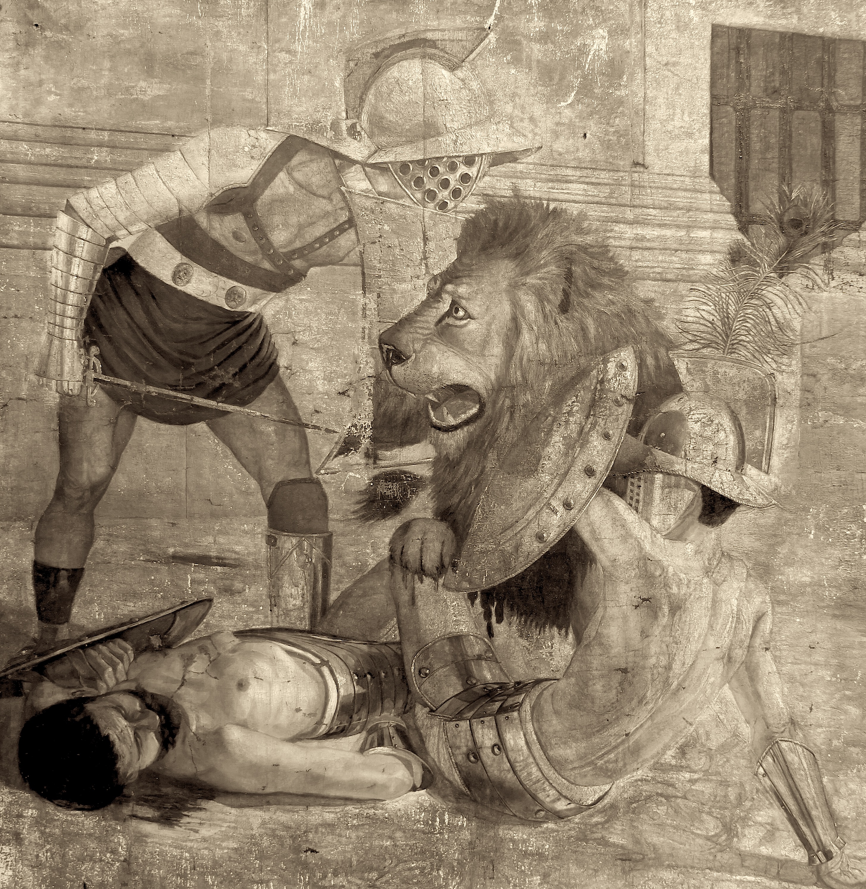 검투사들은 보통 노예나 전쟁 포로들 중에서 운동 실력이 출중하고 용맹하게 잘 싸우는 이들로 이루어져 있었는데, 서로 결투를 벌이거나 다양한 종류의 동물을 사냥해 보여 로마 관중들을 즐겁게 해 주었다. 이렇게 살아간다는 것은 위험이 따르는 일이었으나, 검투사가 되면 이득도 있었다. 다른 노예들보다 생활환경이 훨씬 나은 군대식 학교에서 훈련을 받을 수 있었고, 승리를 거둔 검투사들은 영웅 대접을 받음으로써 한편으로는 일체감과 애국심을 불러일으키기도 하고, 다른 한편으로는 공포심을 심어주기 위한 정치적인 목적으로 건립되었다.[129]