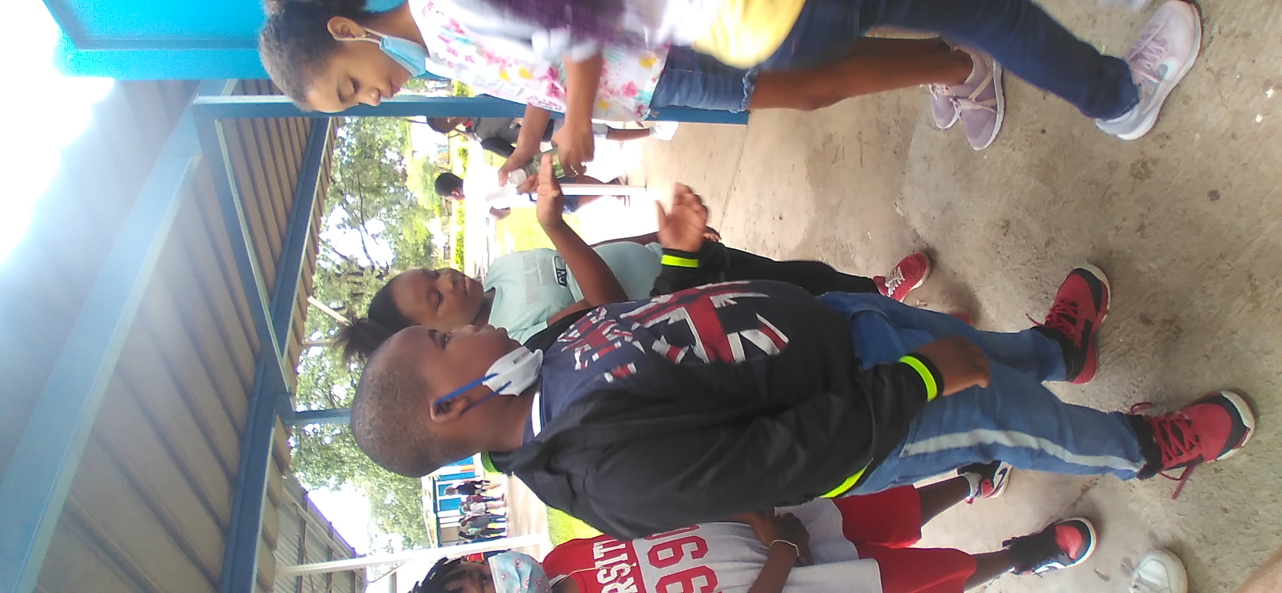 교실에 들어가기 전 손 소독 (2021년 3월)