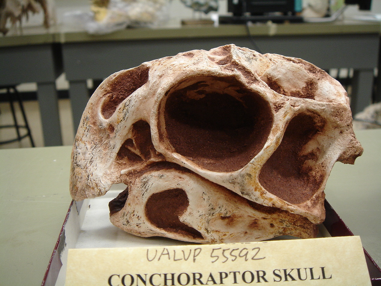 1971년 폴란드-몽골 탐사대에 의해 초기 마스트리히트절 네메그트 지층의 헤르민 차브 붉은 사암에서 처음 발견되었을 때, 과학자들은 ''콩코랍토르''(Conchoraptor)가 어린 오비랍토르(Oviraptor)이며 이 동물의 없는 볏은 동물이 성적 성숙에 도달했을 때 자라기 시작했을 것이라고 믿었다. 여러 골격을 추가로 연구한 결과 ''콩코랍토르''는 새로운 속에 속한다는 것을 보여주었다. ''콩코랍토르''의 손은 과학자들이 그것을 ''오비랍토르''에서 분리하기로 결정한 주요 이유였다. 해부학적으로 손은 ''아잔키게니아(Ajancingenia)''와 ''오비랍토르''의 손 사이의 진화적 중간 단계인 것으로 보였으며, 이 동물이 알려진 종의 구성원이 아니라는 것을 분명하게 만들었다.[1]