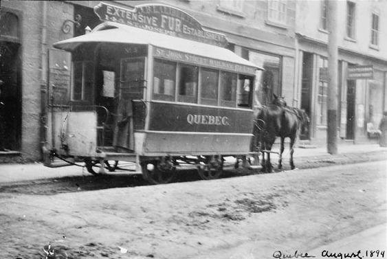 1863년 가을, 퀘벡의 주요 경영인들과 핵심 인사들이 캐나다주 의회에 마차 회사 설립을 위한 서명을 받아냈다. 이 중에는 피에르 가르노, 존 르므쥐리에, 기욤유젠 쉬닉, 세리스 테튀 등이 포함되었다.[10] 1863년 10월 15일, 퀘벡시가철도회사(Quebec Street Railway)가 인가되었고, 퀘벡의 다섯 동네를 이을 마차 노선 건설권을 확보하였다.[11] 이 회사는 샹플랭 시장과 생투르스가 경계까지 마차를 운행하였다.[10] 1865년 8월 18일, 퀘벡의 첫 마차 노선이 개통되었다. 마차철도가 도입되면서 기존 마차는 사양길에 접어들었다. 마차 표는 25센트에서 50센트였던 반면 마차철도 표는 5센트에 불과했기 때문이다. 일부 마부들은 마차철도 도입에 대해 불공정한 경쟁이라며 비난하였고, 이에 대한 항의로 일부 차량이 훼손되고, 선로를 뜯어가고, 일부 마차철도 운전사들에게 폭력을 일삼기도 하였다.[12]