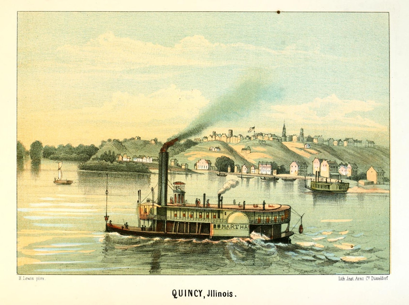 1840년, 퀸시는 시로 승격되었다.[9] 1850년대, 증기선과 철도 연결로 퀸시는 크게 번영했으며, 피오리아를 제치고 일리노이 주에서 두 번째로 큰 도시가 되었다.[6][13]