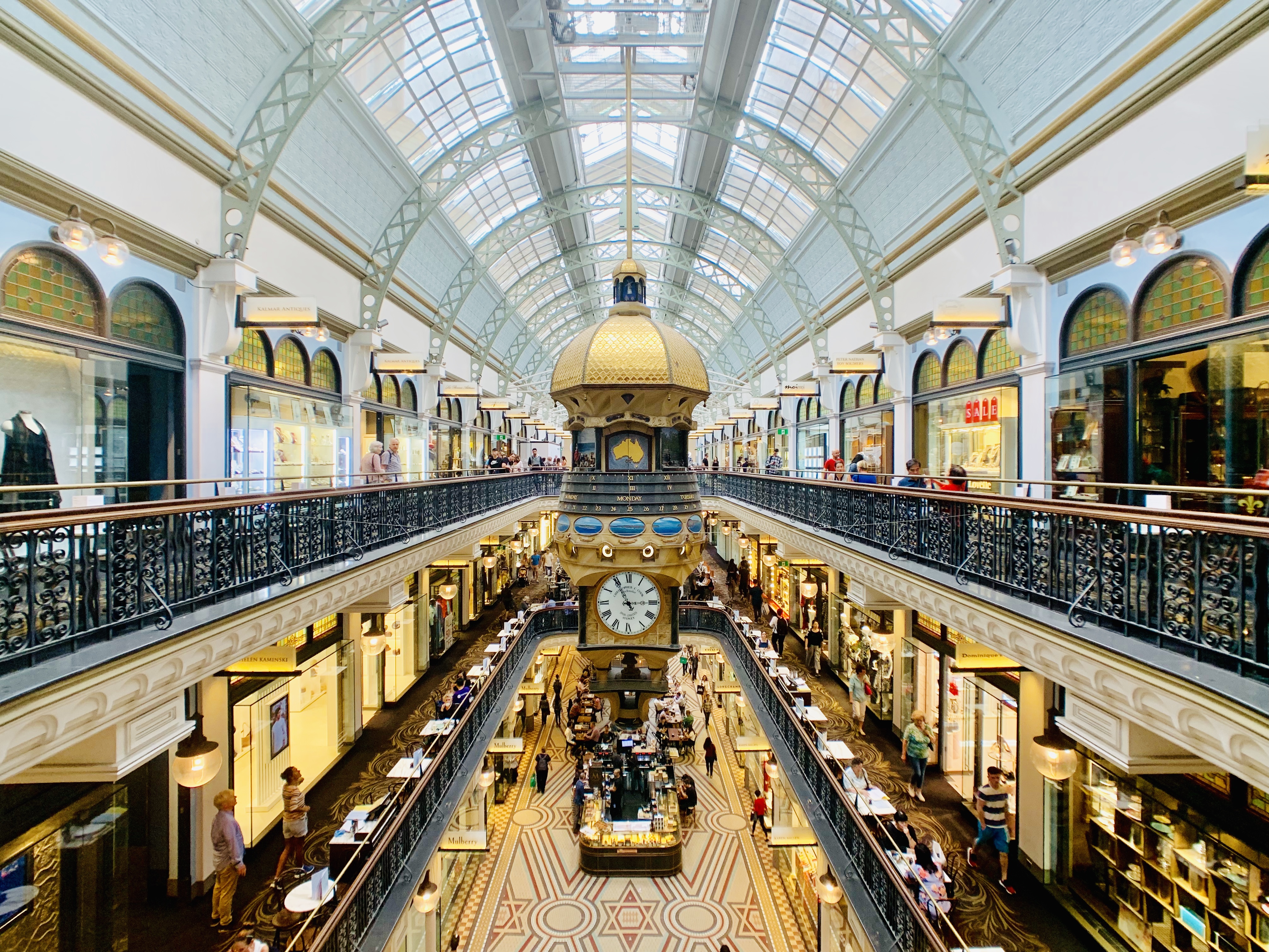 웅장한 3층 규모의 빅토리아 시대의 랜드마크 소매 아케이드로, 사암으로 덮인 벽과 구리 이 특징이며, 1893년부터 1898년까지 연방 로마네스크 양식으로 설계되었다. 1층을 제외하고는 외관이 기본적으로 변경되지 않았으며, 대규모 도시 블록에 로마네스크와 비잔틴 양식이 복합적으로 적용되었다. 벽돌과 콘크리트로 건설되었으며 강철 지붕 구조를 갖추고 있으며 외부는 시드니 프리 스톤으로 마감되었다. 주요 특징은 지름 19m에 달하고 쿠폴라 꼭대기까지 60m 높이에 이르는 거대한 중앙 돔이며, 20개의 작은 돔과 마찬가지로 외부에는 구리로 덮여 있다. 건물은 지하, 지상 및 두 개의 주요 상층부로 구성되며 끝 부분 파빌리온에 추가 층이 있다.[2]