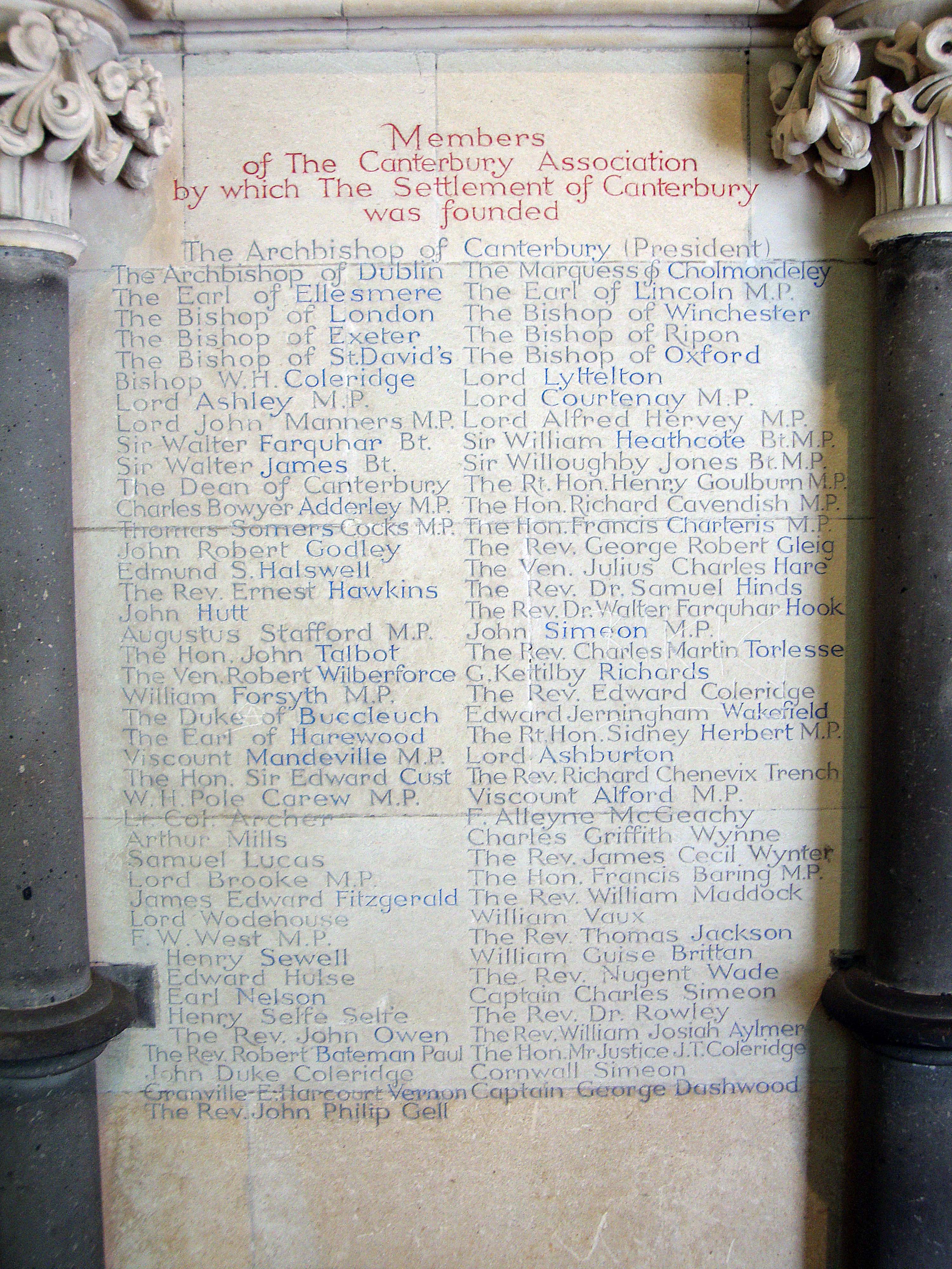 최초의 네 척의 배(First Four Ships) 이전에 캔터베리에 도착한 로즈 가문은 탑과 첨탑을 위해 기금을 제공했다. 로버트 히튼 로즈(Robert Heaton Rhodes)는 그의 형제 조지를 기리기 위해 탑을 건설했고, 첨탑은 조지의 자녀들에 의해 추가되었다. 가족은 8개의 종과 기념 창문을 구입했고 필요에 따라 개조 비용을 지불했다.[13]