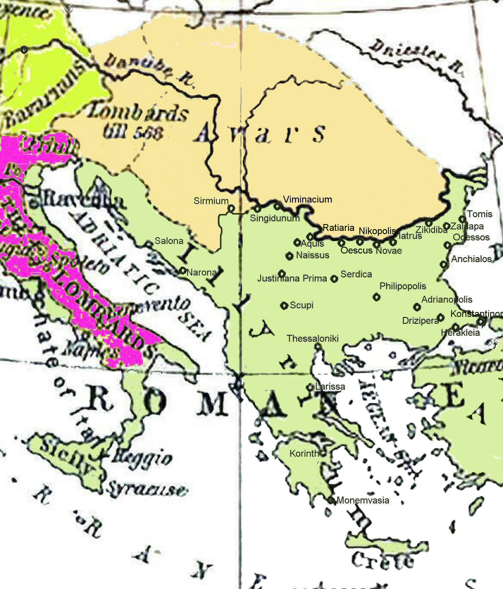 비잔틴 제국이 영토를 재정복했지만, 6세기 중반부터 초기 슬라브족의 이동이 이어졌다. 7세기까지 대부분의 로마 속주는 아바르 카간국의 압박을 받았는데, 이는 판노니아 아바르족이 이끄는 유목 연맹이었다. 대략 614년, 아바르족과 슬라브족은 달마티아 속주의 수도인 살로나를 약탈하여 파괴하고 이 지역에 대한 직접적인 통제권을 유지했다.