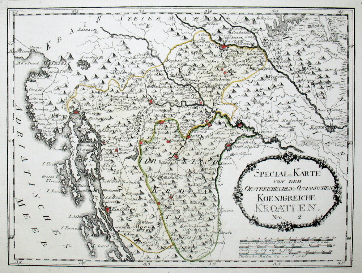 18세기 크로아티아, 달마티아, 슬라보니아, 보스니아, 세르비아, 이스트리아, 라구사 공화국 지도