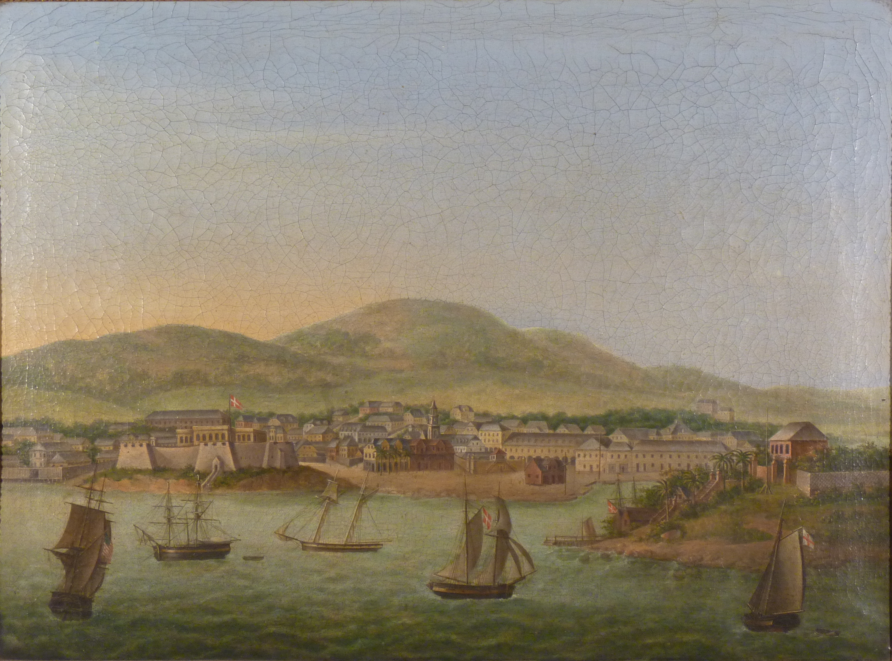 1733년 프레데릭 모스 대위가 세인트크로이 총독으로 임명된 후 이 도시가 설립되었다. 모스의 일행은 세인트토마스를 출발하여 9월 5일까지 포트 크리스천스웨른을 위한 부지를 개간했다. 1734년 1월 8일, 이 요새 옆에서 열린 의식에서 프랑스는 덴마크 서인도 제도 및 기니 회사에 정식으로 섬을 넘겨주었다.[2] 세인트크로이는 설탕용 215개와 면화용 85개를 포함하여 300개의 농장으로 할당되었으며, 측량된 농장은 약 914.40m x 약 609.60m였다. 회사는 설탕 정제소와 양조장을 설립했고, 요새는 1740년까지 완공되었다. 1742년 인구 조사에 따르면 설탕 농장 120개, 면화 농장 122개, 노예 1,906명, 영국인 약 300명, 덴마크인 60명이 있었다. 1743년에는 세인트크로이에 병원이 설립되었고, 1745년에는 노예 수가 2,878명으로 증가했다.[2]2. 2. 노예 무역과 설탕 산업의 번성