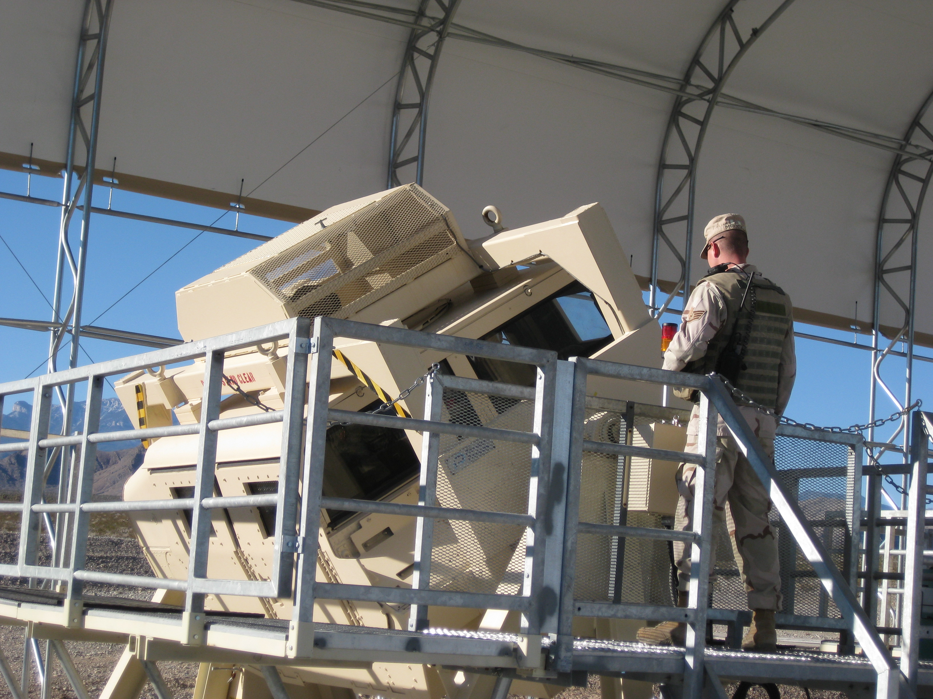 - 차량: 장갑 험비, MRAP, MATV. M2, M-240 또는 Mk 19 유탄 발사기와 같은 장착된 무기를 원격으로 작동하기 위한 CROWS 시스템이 장착되었을 수도 있고 그렇지 않을 수도 있다.
