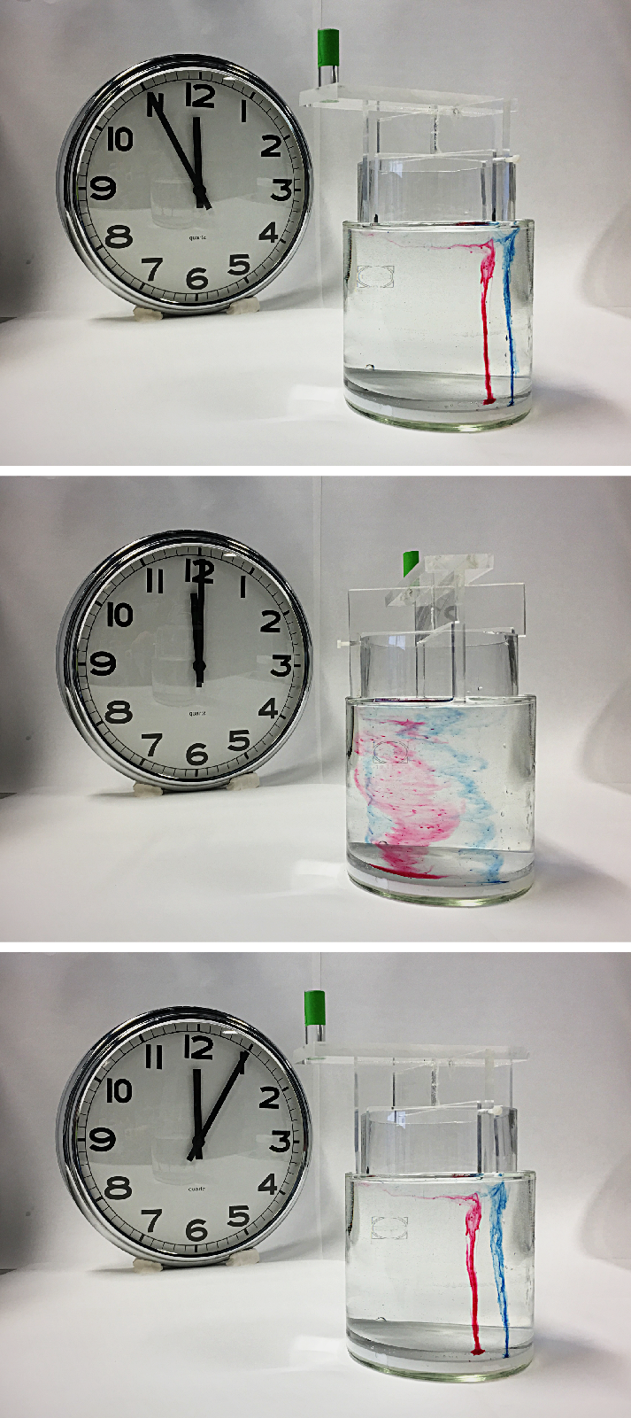 헬레-쇼 흐름(Hele-Shaw flow)은 관성력을 무시할 수 있는 기하학적 구조의 한 예시이다. 이는 매우 가깝게 배치된 두 개의 평행한 판으로 정의되며, 판 사이의 공간은 부분적으로 유체로 채워지고 부분적으로 판에 수직인 생성기를 가진 원통 형태의 장애물로 채워진다.[9]