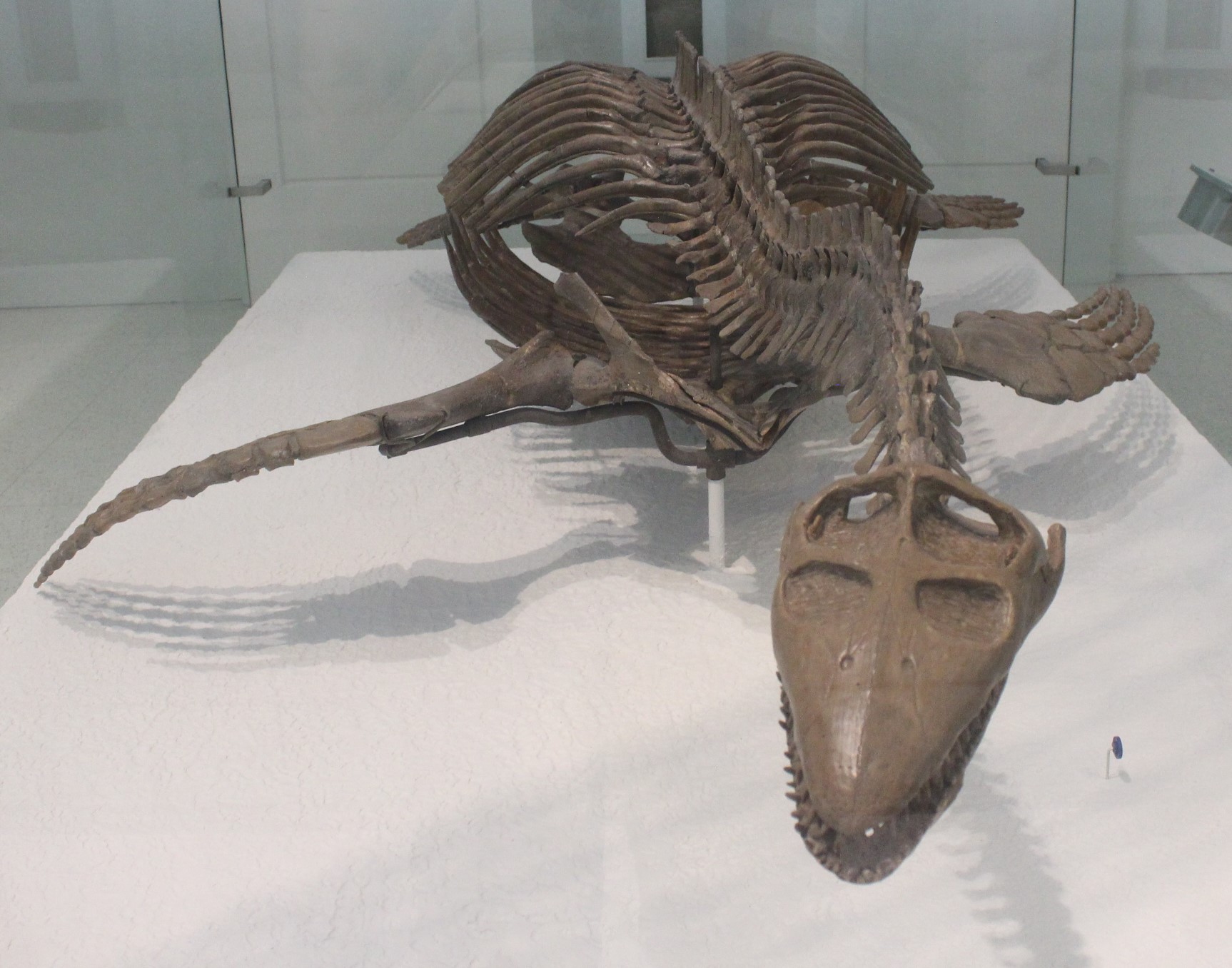 플레시오사우루스는 1823년 메리 애닝에 의해 발견된 해양 파충류로, 긴 목과 물갈퀴를 이용하여 헤엄치며 조개, 물고기 등을 먹고 쥐라기 초기에 번성했으며, 대중문화에서 미확인 동물의 모티브가 되기도 한다. - 쥐라기의 수장룡 - 리오플레우로돈