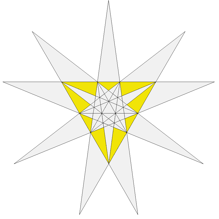 깎은 큰 별모양 십이면체는 깎아낸 꼭짓점에서 삼각형 면 20개와 원래 오각성 면을 깎아서 나온 두 배가 된 (숨겨진) 오각형 면({10/2})이 12개로, 정이십면체와 모서리를 공유하면서 포함되는 큰 십이면체를 두 개 만드는 불가능한 다면체이다.