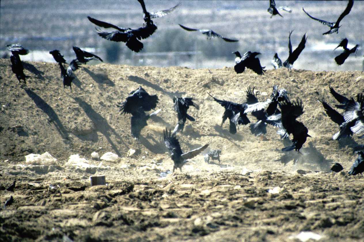 송장까마귀는 까마귀과의 조류로, 검은색 깃털과 녹색 또는 보라색 광택을 띠며 유라시아 대륙 등에 분포하고 잡식성으로 곤충 등을 먹으며 높은 지능을 가진 영리한 동물이다. - 까마귀속 - 떼까마귀