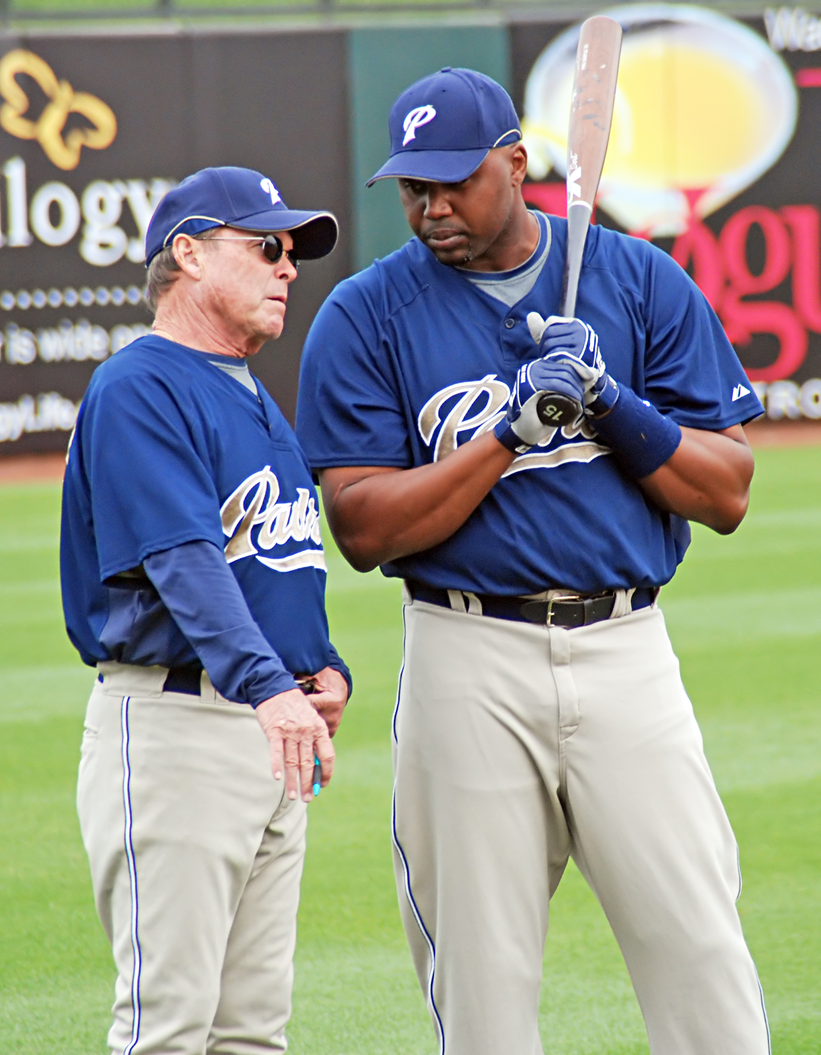 2009년 3월 5일 샌디에이고 파드리스의 타격 코치 짐 르페브르와 대화하는 플로이드