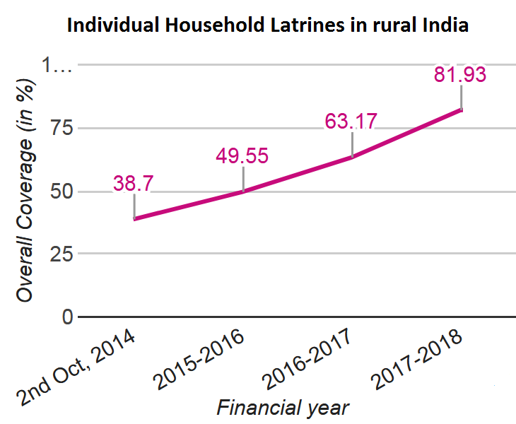 2011년 인구 조사에 따르면 인도 농촌 지역의 위생 보급률은 34%에 불과했고, 약 6억 명이 노상 배변을 하고 있었다.[28] 이는 전 세계에서 가장 높은 수치이며, 전염병으로 인한 어린이 사망의 주요 원인이었다.