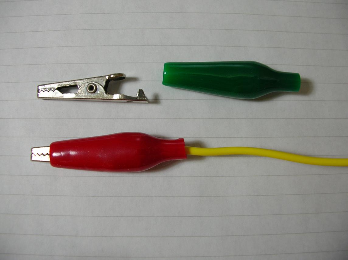 - 와니구치 클립[38]: 단자나 리드선을 끼워서 접속하기 위한, 본체가 노출된 형태의 클립이다. 찝는 부분을 절연체로 덮은 것도 있다. 이름은 외관이 악어의 입을 닮아서 붙여졌다. 약전용 소형부터, 부스터 케이블의 선단에 사용하는 것과 같은 대형까지 있다.