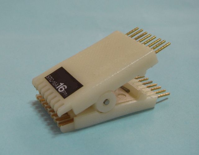 - IC 테스트 클립: 전자 기판에 실장된 DIP 타입의 IC를 양쪽에서 끼워서 측정 프로브를 접속하기 쉽게 하기 위한 공구이다.