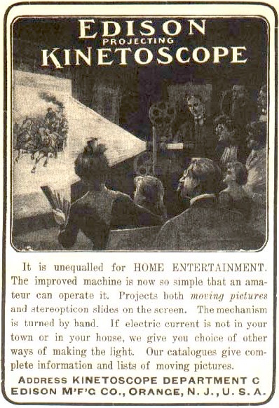 1891년 5월 20일, 에디슨은 프로토타입 키네토스코프를 선보였는데, 이때 상영된 것은 『딕슨의 인사(''Dickson Greeting'')』였다.[117]