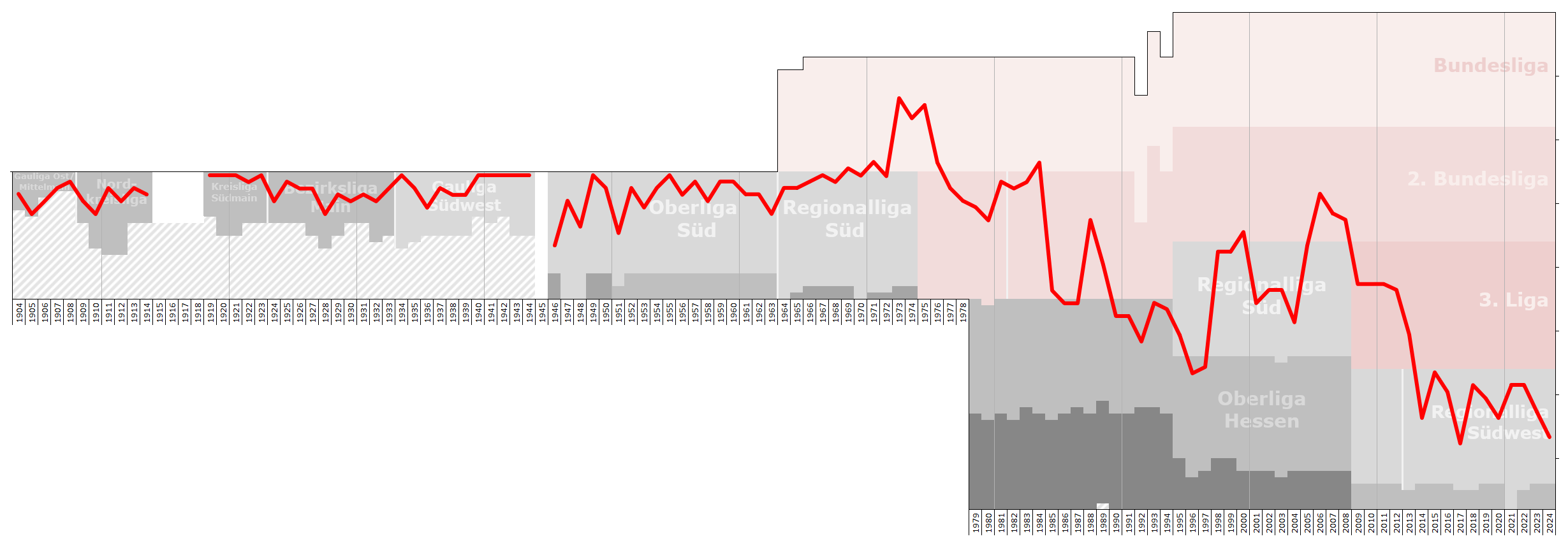 1901년에 창단되었다. 1909년 클럽은 노르트크라이스리가 창립 멤버 중 하나가 되어 제1차 세계대전 발발 전까지 활동했다. 전쟁 이후에는 크라이스리가 쥐트마인(I)에서 활동하며 1920년, 1922년, 1923년에 리그 우승을 차지했다.1920년대 후반과 1930년대 초반에는 베치르크스리가 마인-헤센에서 중위권 팀으로 활약했다. 1933년 제3제국 하에서 독일 축구가 16개의 1부 리그 가울리가로 재편되자, 키커스는 가울리가 쥐트베스트에 참가하여 곧바로 우승을 차지하며 처음으로 전국 플레이오프에 진출했다. 플레이오프에서는 부진했지만, 이후 경기력을 향상시켜 1940년부터 1944년까지 5년 연속 리그 우승을 거머쥐었다.[2]