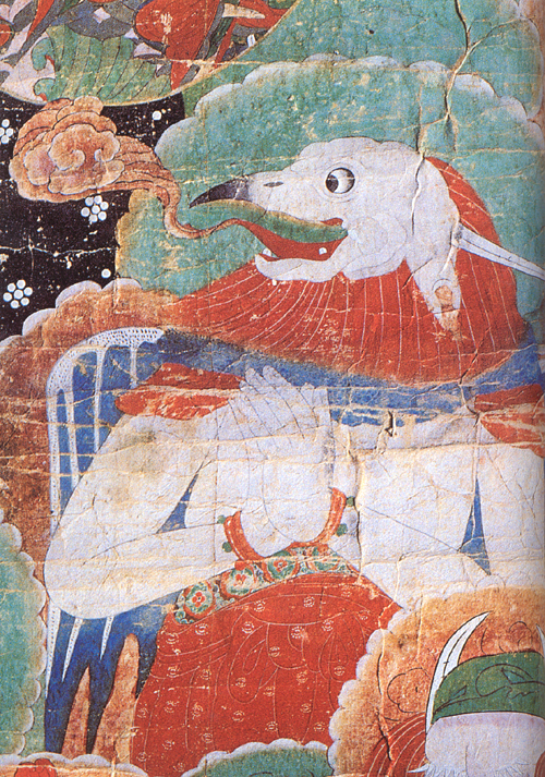 가루라는 불교 미술에서 다양한 형태로 표현되는 신성한 존재로, 기가쿠 가면, 부동명왕의 가루라 불꽃, 텐구 묘사의 원형, 현대 대중문화 모티브 등으로 나타난다. - 불교 전설의 생물 - 마호라가