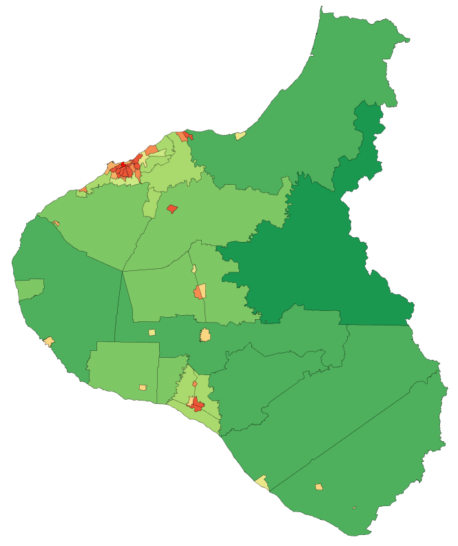 2023년 인구 조사 기준 타라나키 지역 인구 밀도 지도