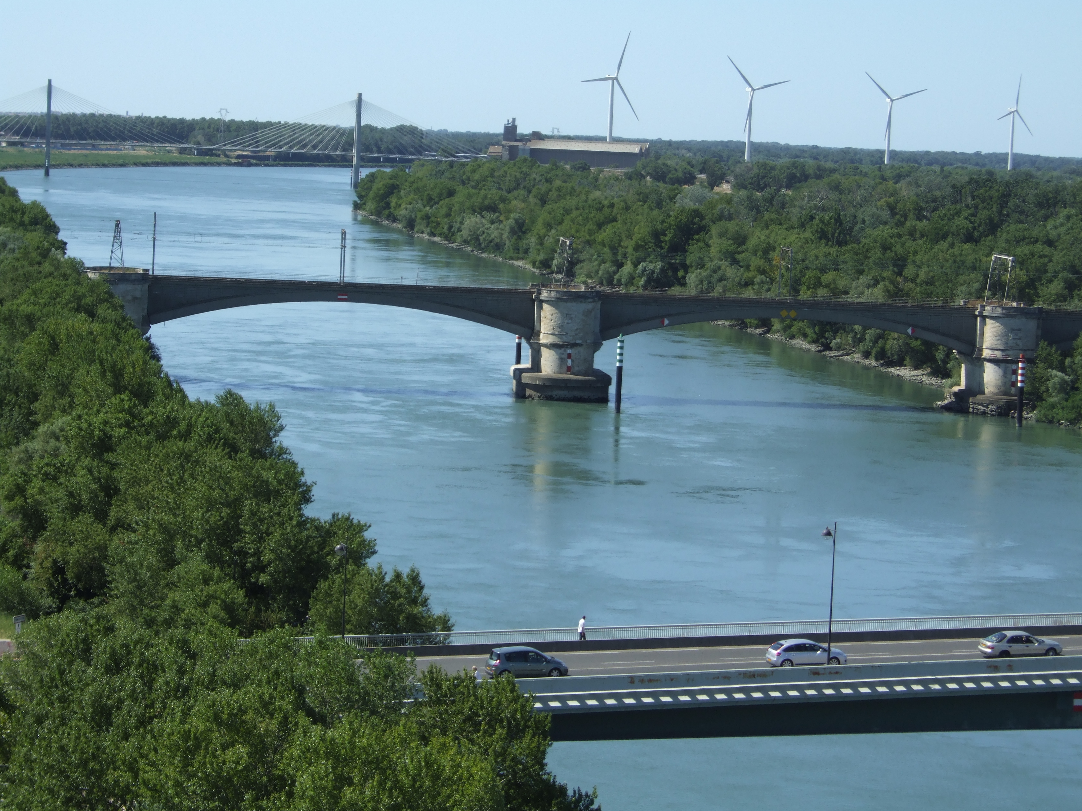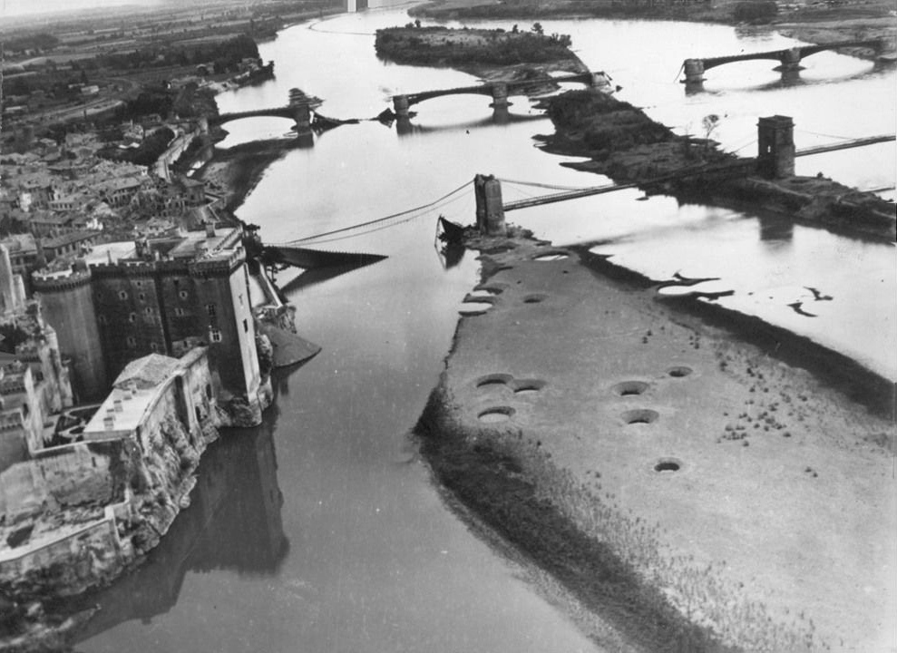제2차 세계 대전 중 1944년 6월부터 8월까지 연합군의 폭격으로 도시는 피해를 입었다. 독일군의 퇴각을 방해하기 위해 론 강을 가로지르는 다리를 목표로 한 폭격으로 구시가지의 일부가 파괴되었다. 첫 번째 폭격은 1944년 6월 25일에 있었다. 1944년 8월 16일에는 생트 마르트 교회의 첨탑 꼭대기가 파괴되었다.