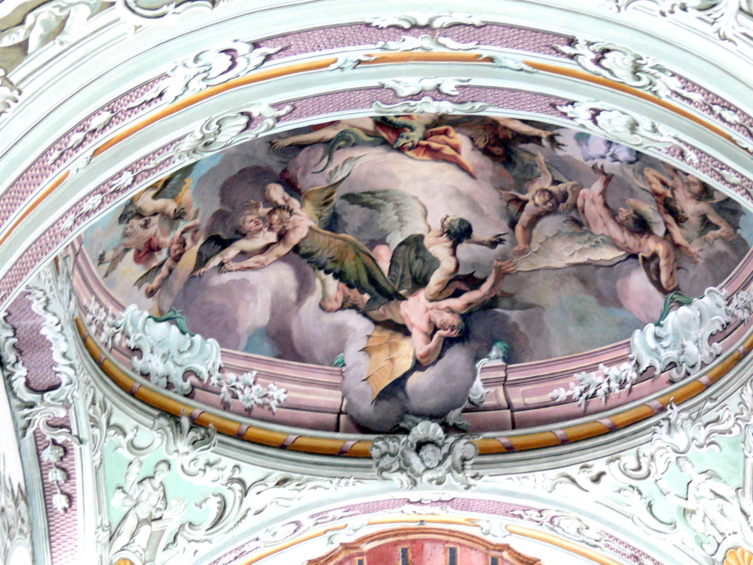 아우구스티누스는 그의 ''신국론''에서 빛과 어둠처럼 서로 대립되는 두 개의 도시(''시비타테스'')를 묘사한다.[85] '지상의 도시'는 타락천사들의 반역 행위로 인해 발생하며, 사탄이 이끄는 사악한 인간과 악마(타락천사)가 거주한다. 반면에 '천상의 도시'는 의로운 인간과 하느님이 이끄는 천사들이 거주한다.[85]