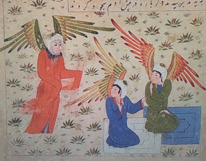꾸란 주석가 타바리는 이 이야기를 무함마드의 동료인 이븐 마수드와 이븐 아바스에게 귀속시켰으며[132], 아흐마드 이븐 한발도 이를 증언했다.[133] 내용을 간략하게 요약하면 다음과 같다. 천사들은 인간의 악행에 대해 불평하며 그들을 파괴해 달라고 요청한다. 이에 신은 천사들이 인간보다 더 잘할 수 있는지 시험하기 위해, 천사들에게 인간과 같은 욕망을 부여하고 사탄이 그들을 지배하게 한다. 천사들은 그들 중 두 명(또는 일부 기록에 따르면 세 명)을 선택한다. 그러나 땅에서 이 천사들은 성적인 욕망을 즐기고 이를 행동으로 옮기며, 우상 숭배의 죄를 짓고 심지어 그들의 행동을 목격한 무고한 증인을 죽이기까지 한다. 이러한 행위로 인해 그들은 다시 천국으로 올라갈 수 없게 된다.[134]