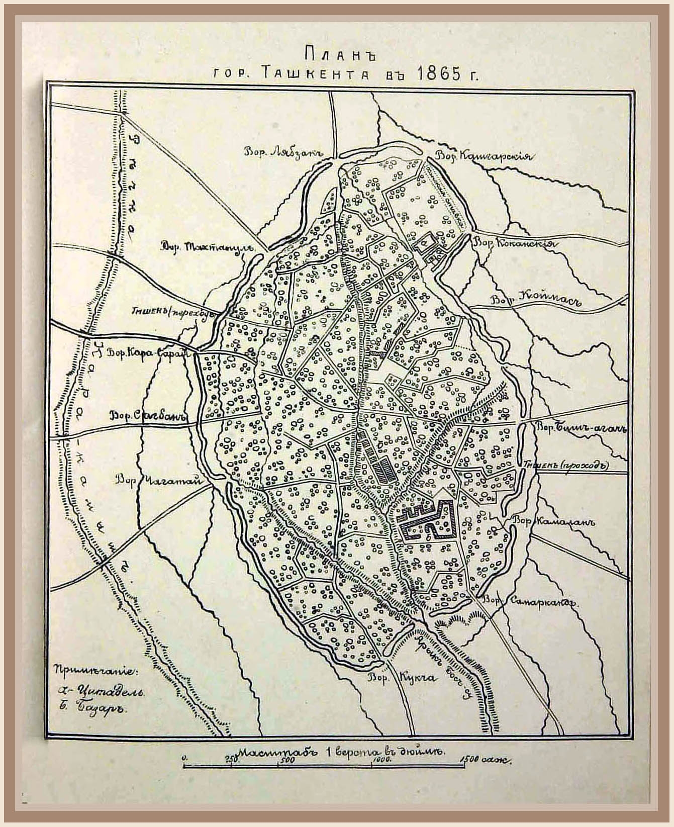 코칸드 지배하에 타슈켄트는 해자와 약 20킬로미터 길이의 진흙 벽으로 둘러싸였고, 12개의 문이 있었다.[32]