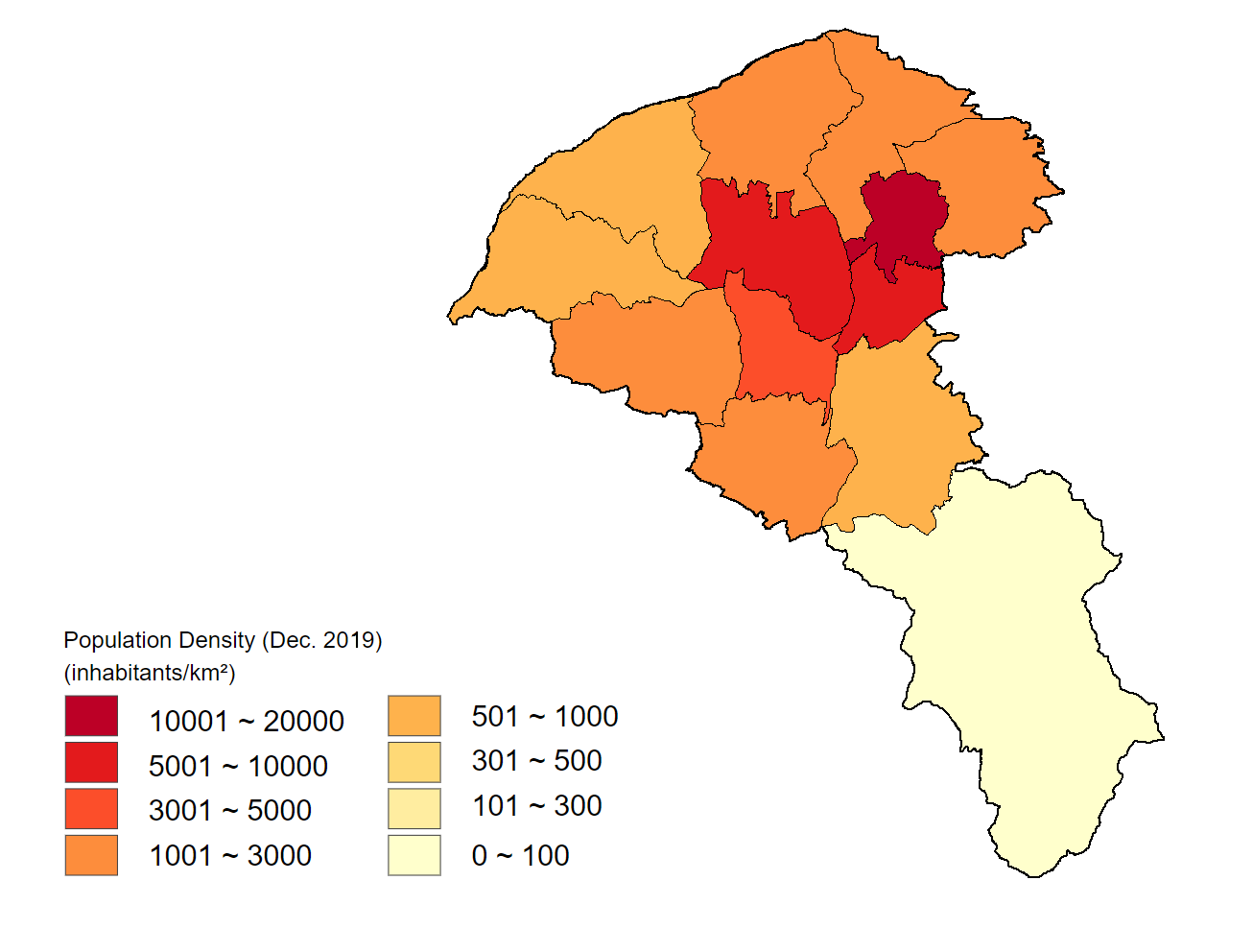 2020년 기준, 타오위안시의 인구는 약 225만 명이다.