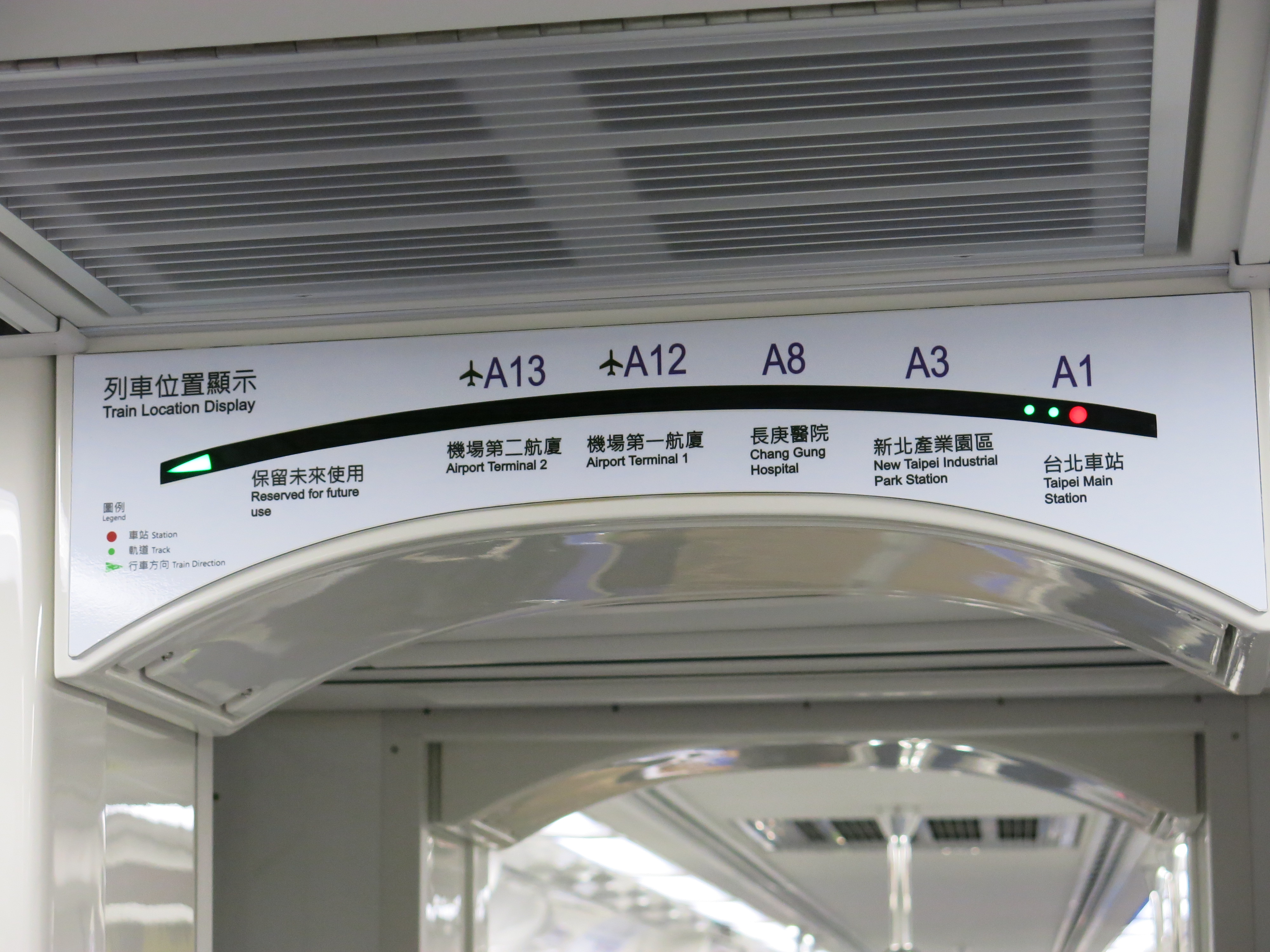 타이베이 주요역에서 타오위안 국제공항까지 운행하는 급행열차가 정차하는 모든 역과 타오위안 고속철도역에는 항공정보표시시스템이 설치되어 있으며, 타이완 철로 관리국(TRA)과 타이완 고속철도(THSR) 환승역 정보도 함께 표시된다.[57][17]