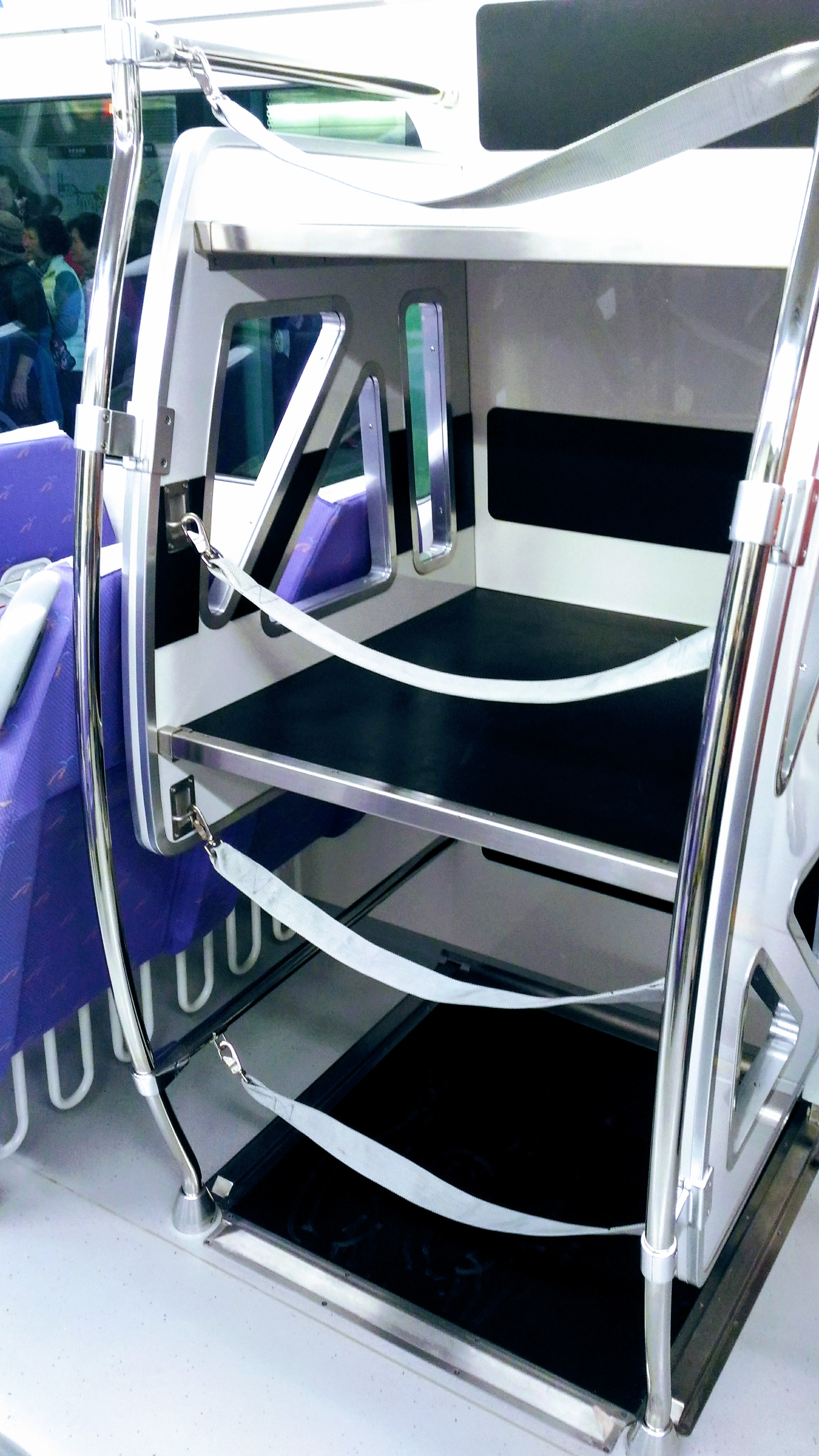 급행 열차에는 좌석 아래 수하물 보관함과 차량당 3개의 수하물 선반이 있고, 완행 열차에는 차량당 2개의 수하물 선반만 있다.[12] 두 열차 모두 무료 Wi-Fi[13]와 항공편 정보 표시 시스템을 갖추고 있지만, 급행 열차에 더 많은 표시 장치가 있다.[7] 급행 열차는 무선 충전기도 제공한다.[14]