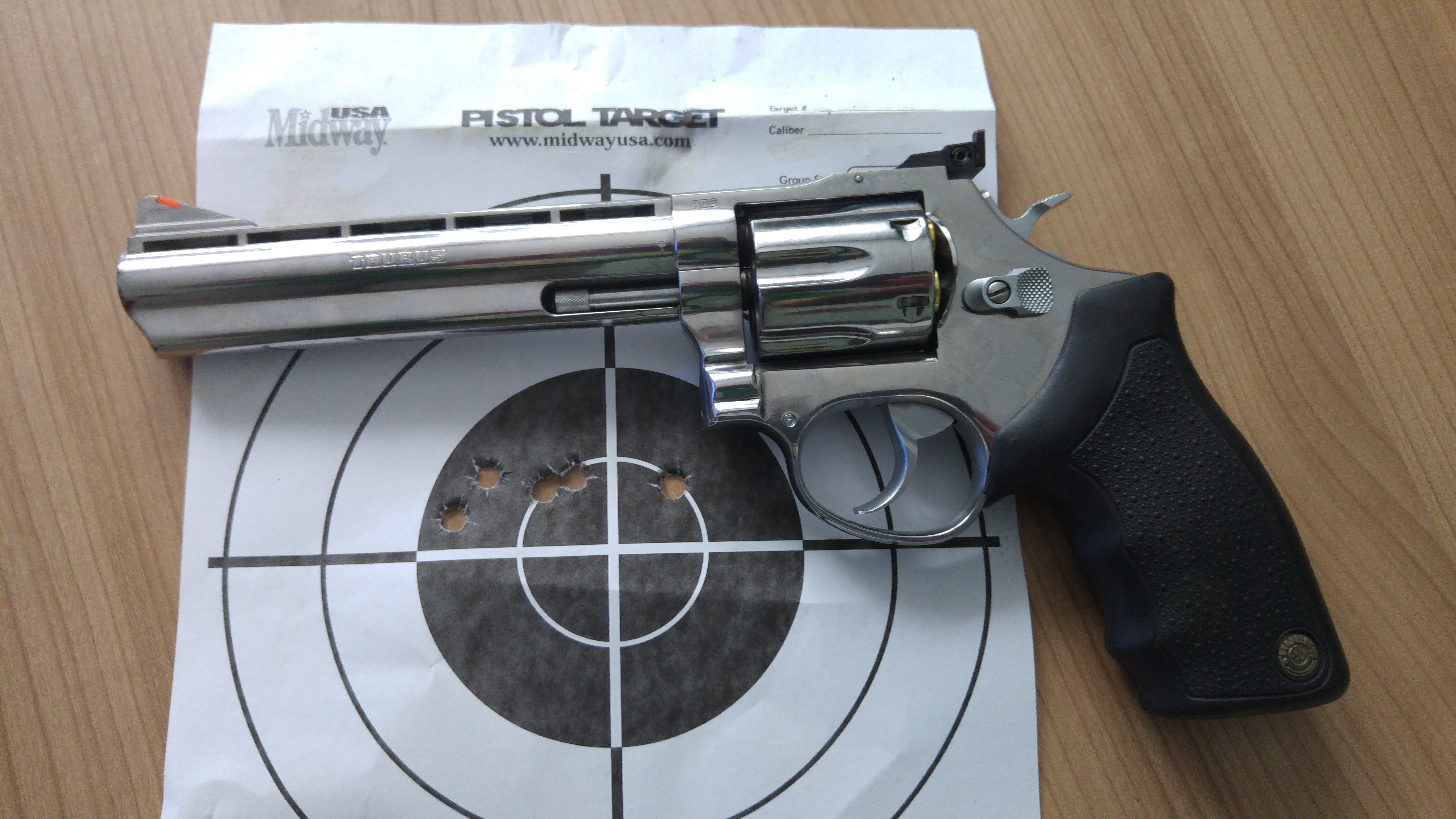 타우루스는 스미스 & 웨슨(Smith & Wesson)과 유사한 디자인의 리볼버를 제조하여 이름을 알렸다.[9] 이후 타우루스는 Raging Bull(.454 Casull)과 Raging Hornet(.22 Hornet) 리볼버, 그리고 .410 bore 및 .45 Colt탄을 사용하는 저지 5연발 리볼버와 같은 더 큰 프레임 모델을 제공하며 리볼버 제품군을 확장했다.[10]