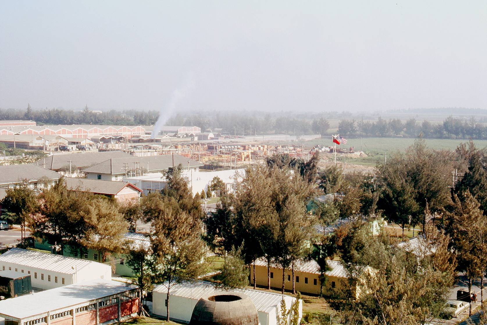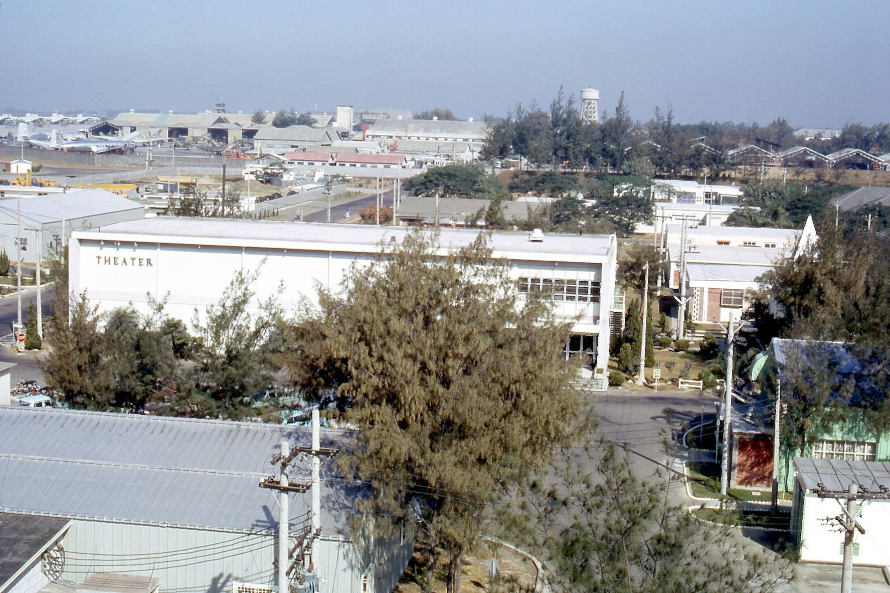 1969년, 타이난 공군 기지의 영화관과 멀리 보이는 기지의 비행기 정비 공장