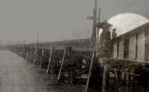 1920년(다이쇼 9년) 4월 3일, 재건된 목조 다리의 개통식이 거행되었고, 이름도 '''타이베이 대교'''로 바뀌었다.[48][49] 이 다리는 보행자 전용이었다.[48][49] 그러나 반년도 채 지나지 않은 9월 4일, 단수이강의 범람으로 다리가 다시 파손되었다.[50]2. 3. 1925년 다리 (철교)